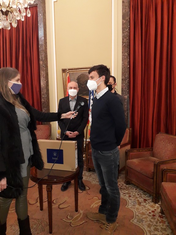 "Добрица није само најбољи матурант код нас него и међу најбољима у свету, јер је освојио чак тринаест златних медаља. Колико је он скроман, види се по томе колико га је поклон обрадовао. Важно је да младе, талентоване људе задржимо овде, али и да се они који су били успешни на престижним универзитетима, попут Луке Милићевића, врате и дају оријентире и подстрек талентованој деци која се још увек школују" – истакао је Радојичић.