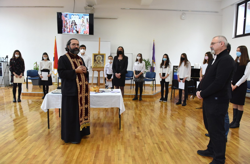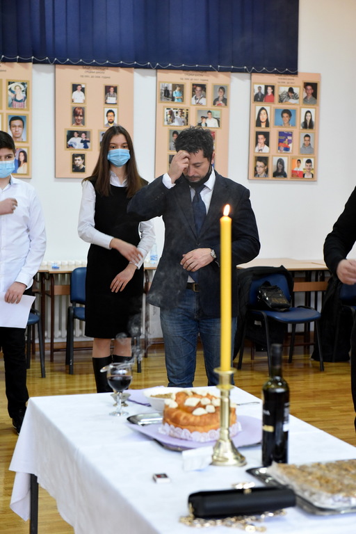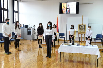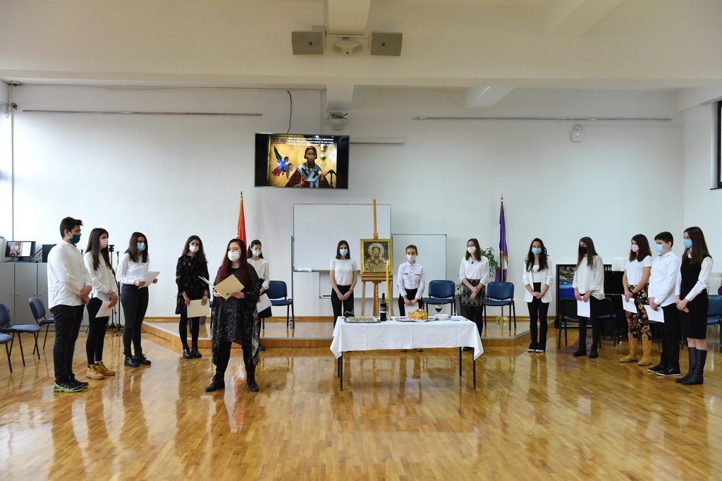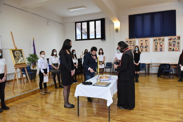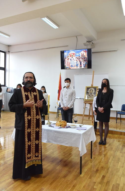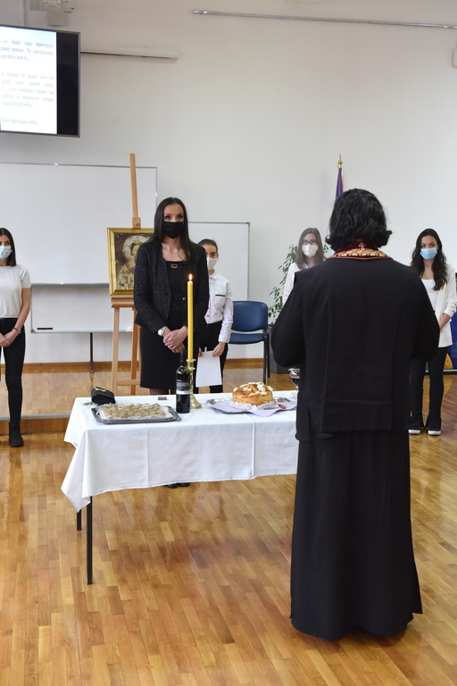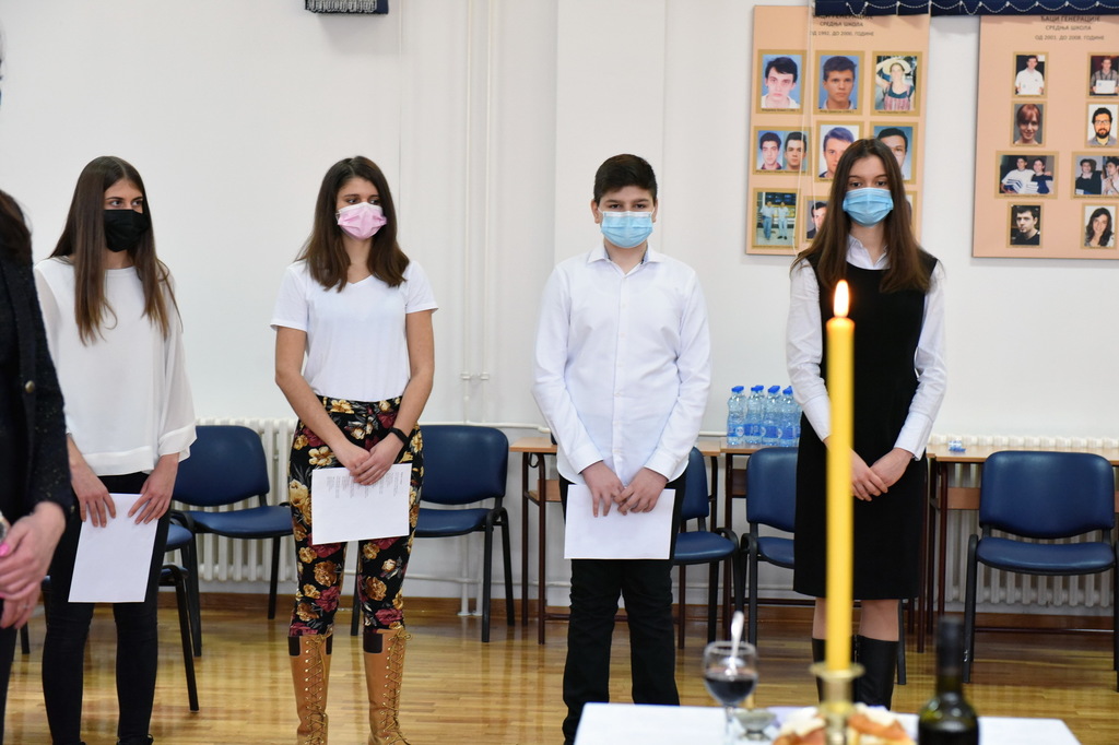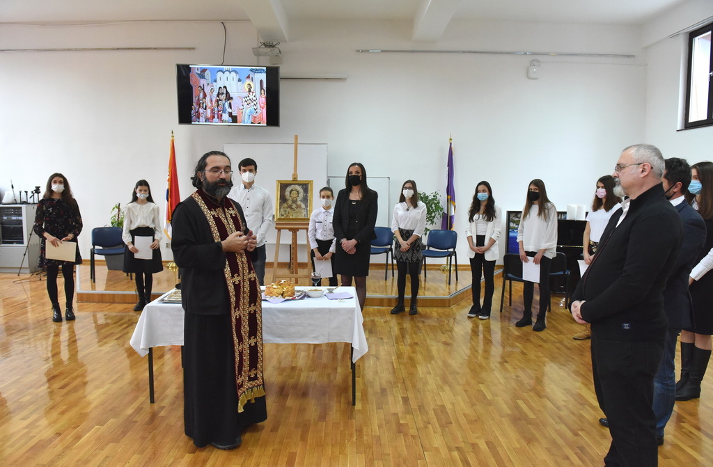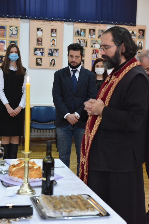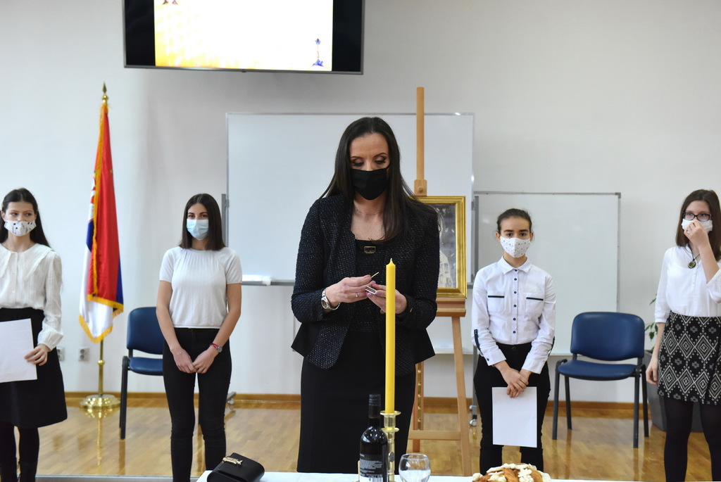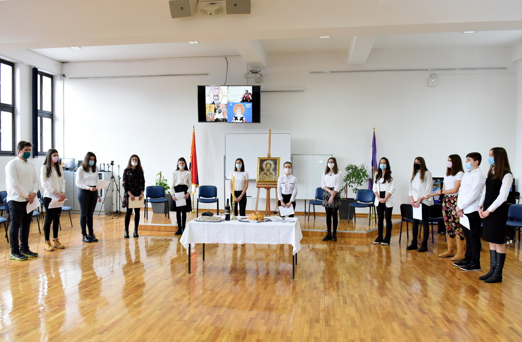 ОпштеДОГАЂАЈИ-фотографијеОве године због тренутне епидемиолошке ситуације нисмо били у могућности да по традицији наше Школе достојно и величанствено, уз Светосавску академију и коктел, заједно окупљени обележимо један од најзначајнијих школских празника. Ученици и запослени у школи, заједно са свештеником Арсенијом Арсенијевићем из Вазнесењске цркве, пресекли су славски колач. Директорка Мирјана Катић је свим присутнима честитала срећну славу и пожелела да је следеће године прославимо у срећнијим околностима. У кратком уметничком програму наступили су ученици МГ. Програм је припремала професорка Јелена Нововић.
