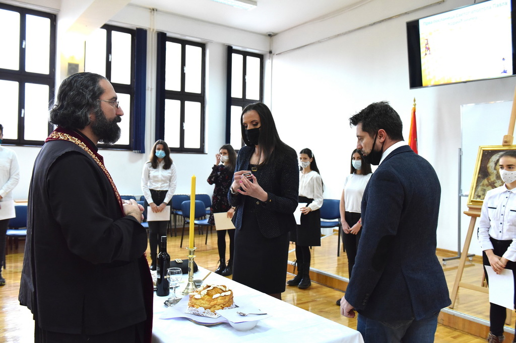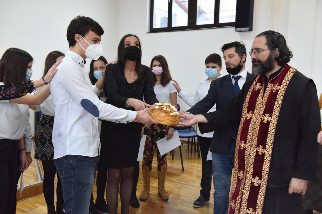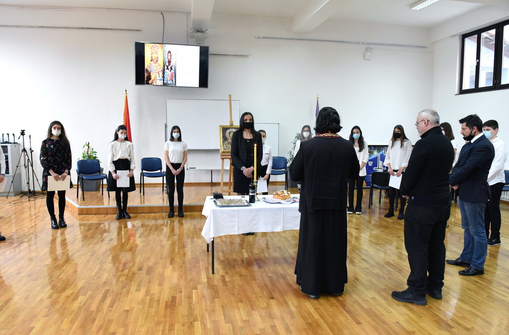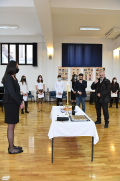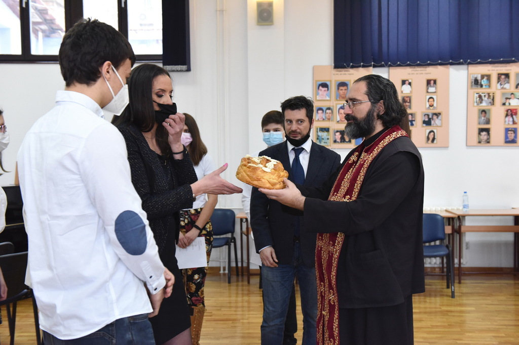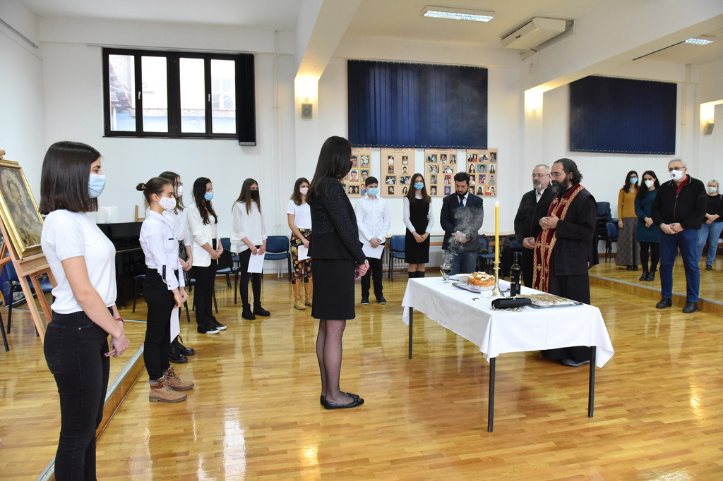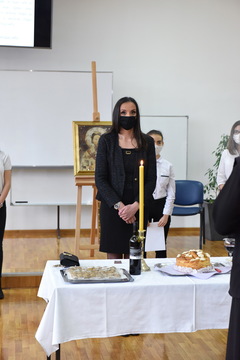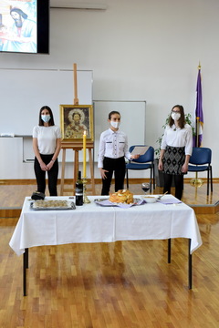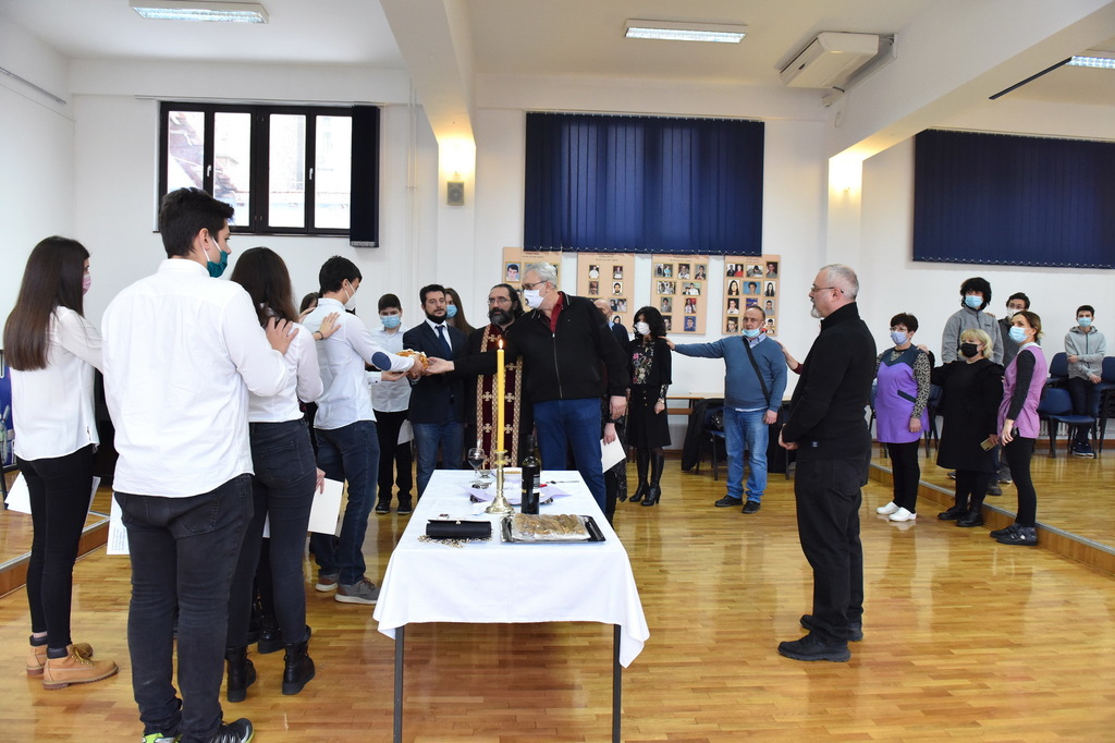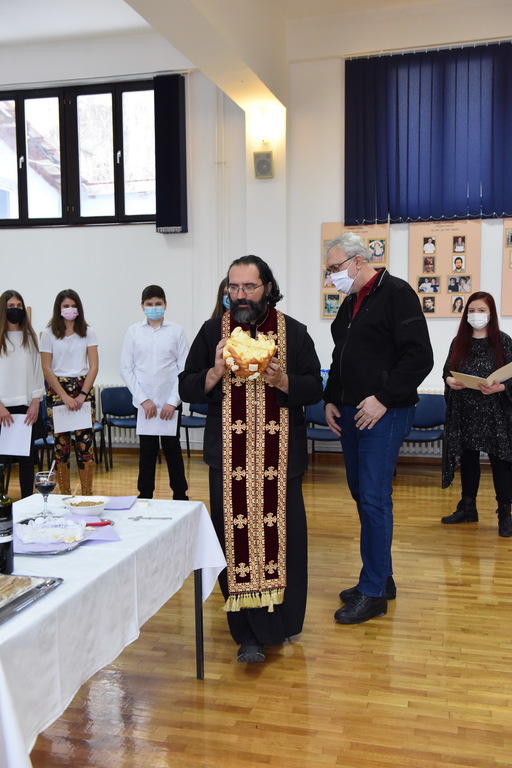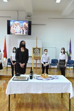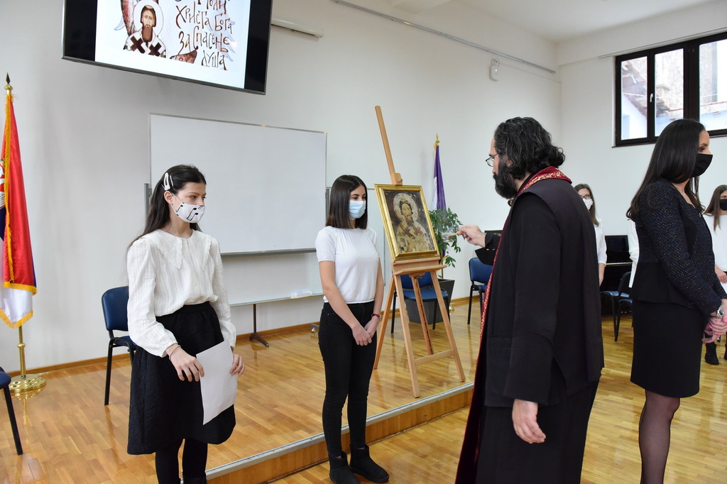 ОпштеДОГАЂАЈИ-фотографијеОве године због тренутне епидемиолошке ситуације нисмо били у могућности да по традицији наше Школе достојно и величанствено, уз Светосавску академију и коктел, заједно окупљени обележимо један од најзначајнијих школских празника. Ученици и запослени у школи, заједно са свештеником Арсенијом Арсенијевићем из Вазнесењске цркве, пресекли су славски колач. Директорка Мирјана Катић је свим присутнима честитала срећну славу и пожелела да је следеће године прославимо у срећнијим околностима. У кратком уметничком програму наступили су ученици МГ. Програм је припремала професорка Јелена Нововић.