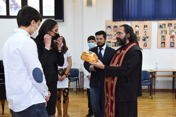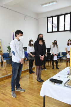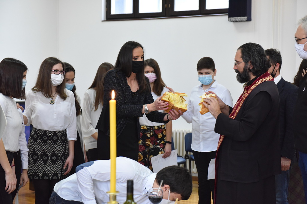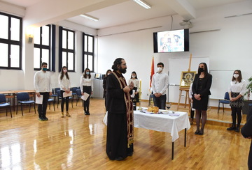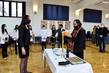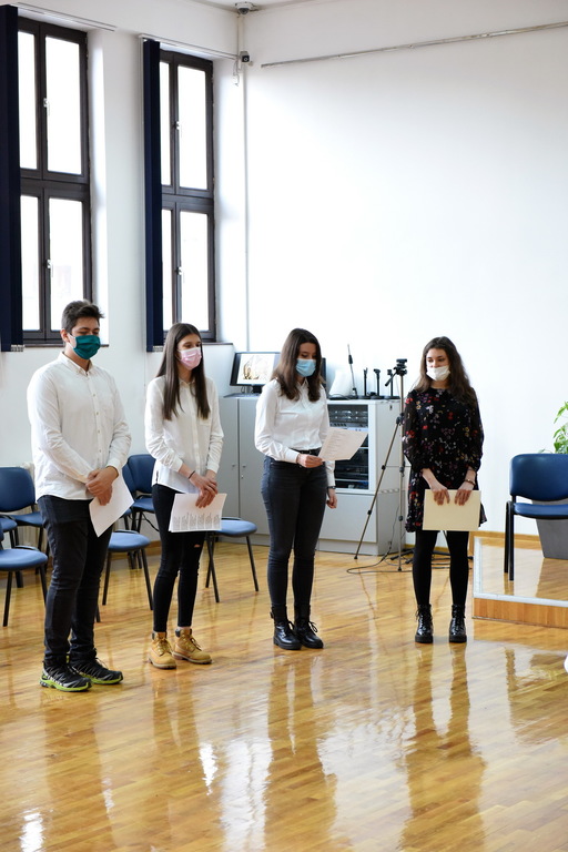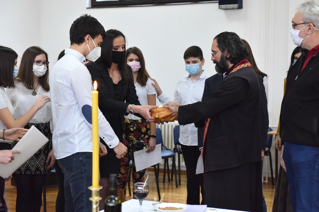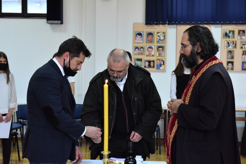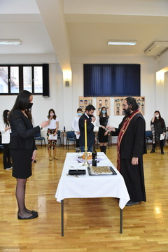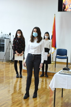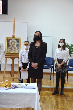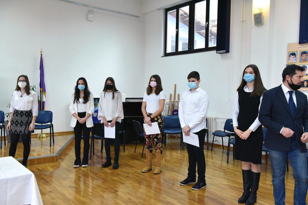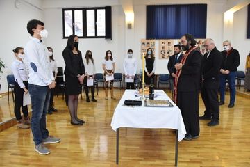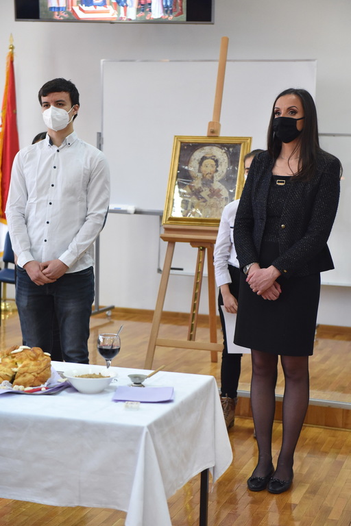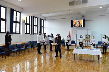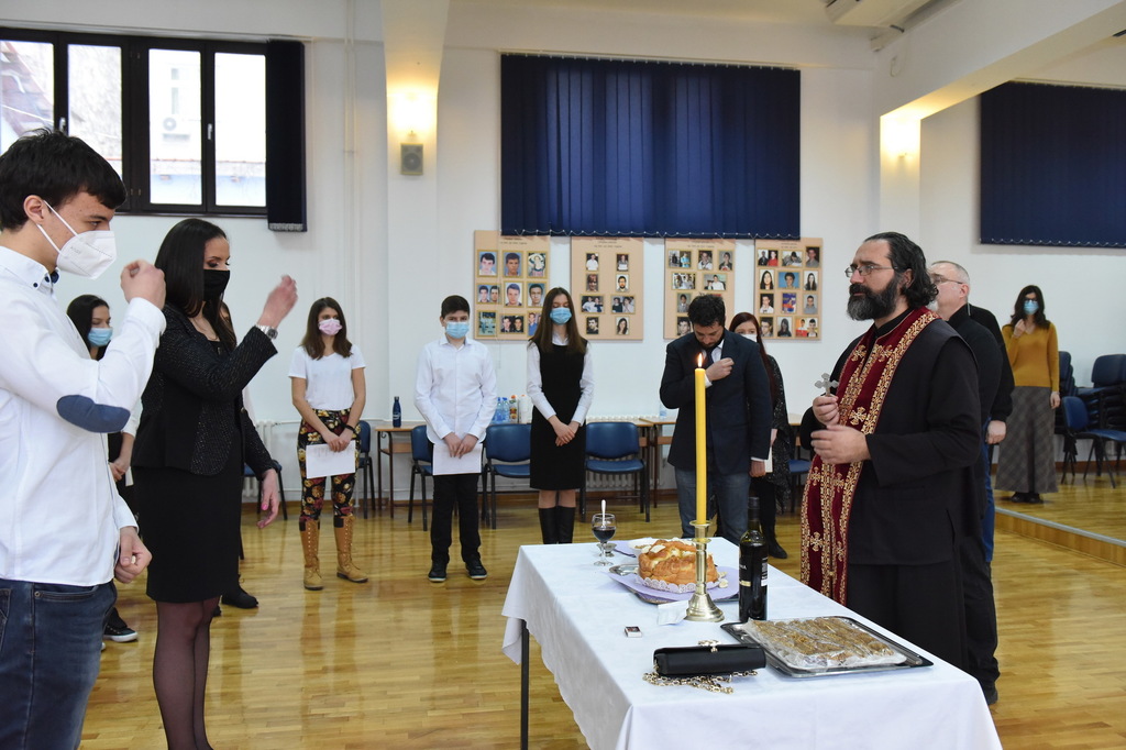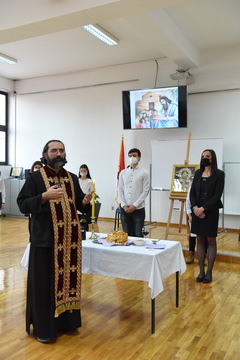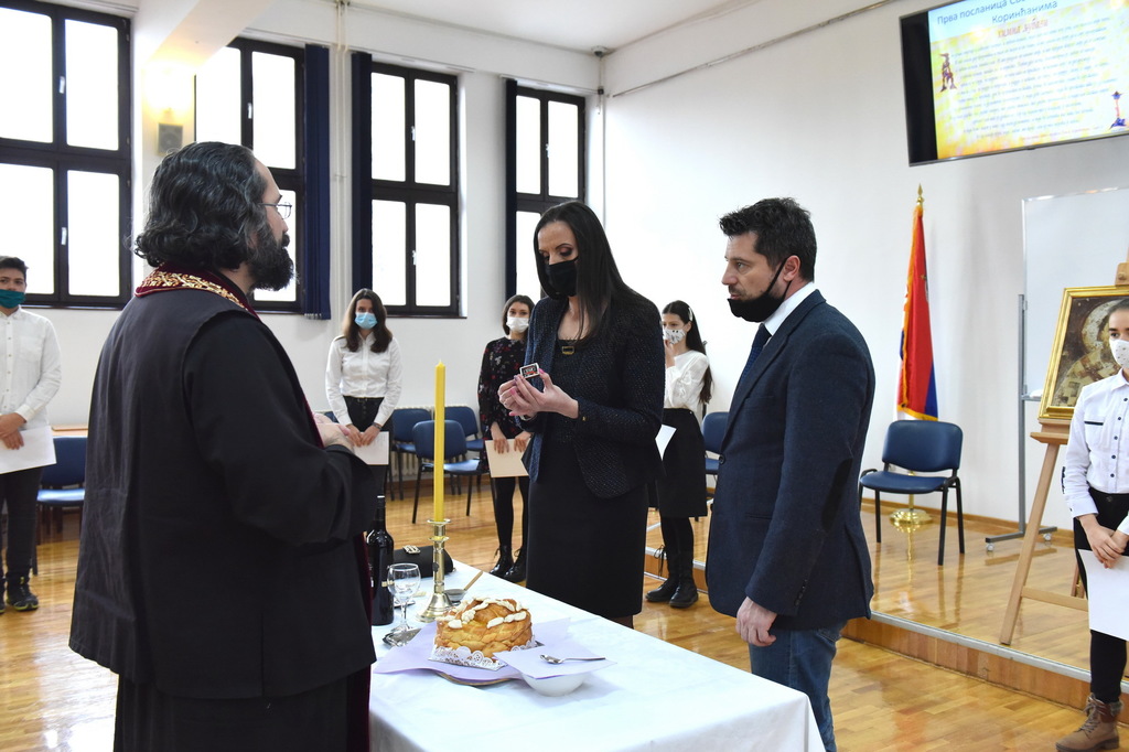 ОпштеДОГАЂАЈИ-фотографијеОве године због тренутне епидемиолошке ситуације нисмо били у могућности да по традицији наше Школе достојно и величанствено, уз Светосавску академију и коктел, заједно окупљени обележимо један од најзначајнијих школских празника. Ученици и запослени у школи, заједно са свештеником Арсенијом Арсенијевићем из Вазнесењске цркве, пресекли су славски колач. Директорка Мирјана Катић је свим присутнима честитала срећну славу и пожелела да је следеће године прославимо у срећнијим околностима. У кратком уметничком програму наступили су ученици МГ. Програм је припремала професорка Јелена Нововић.
