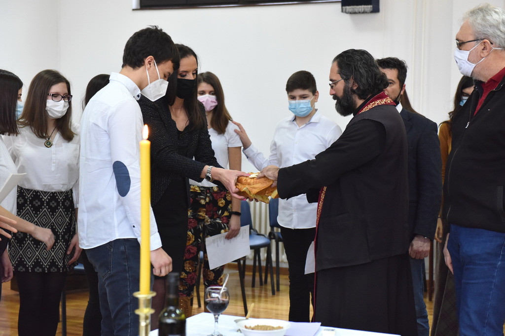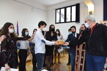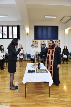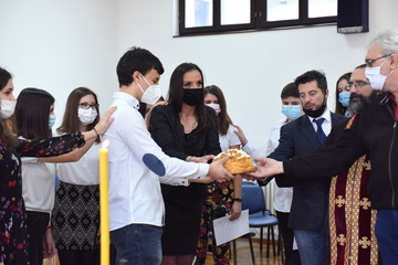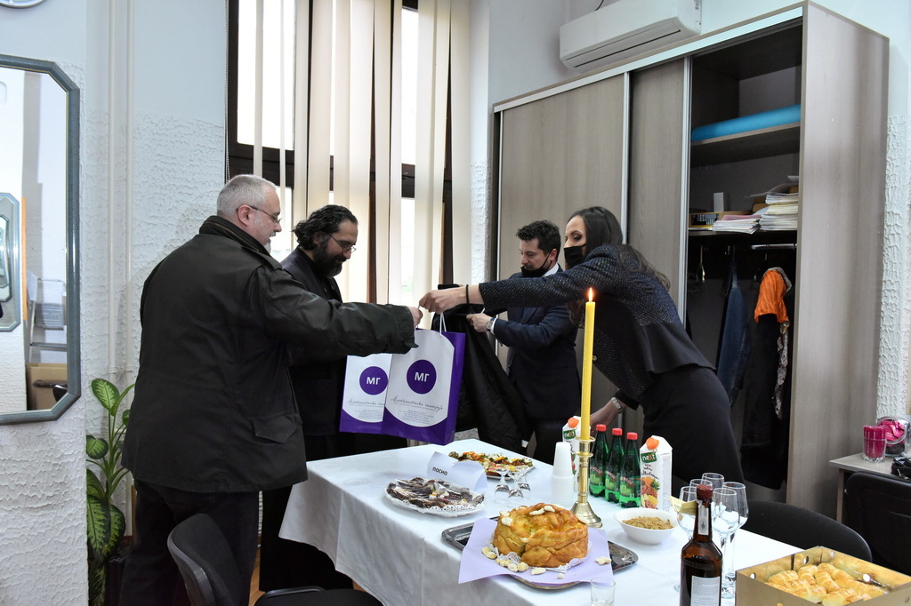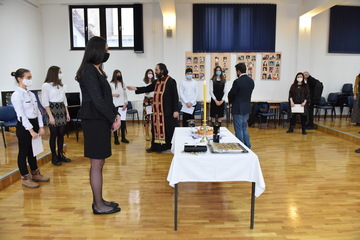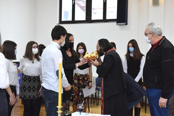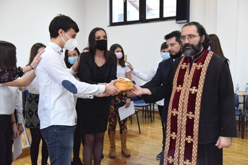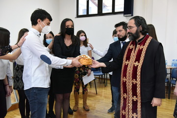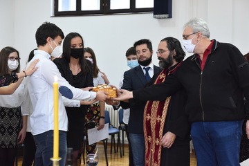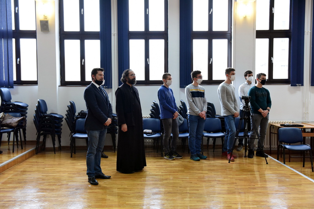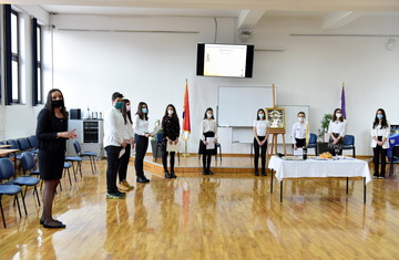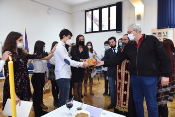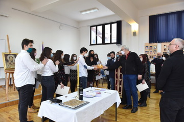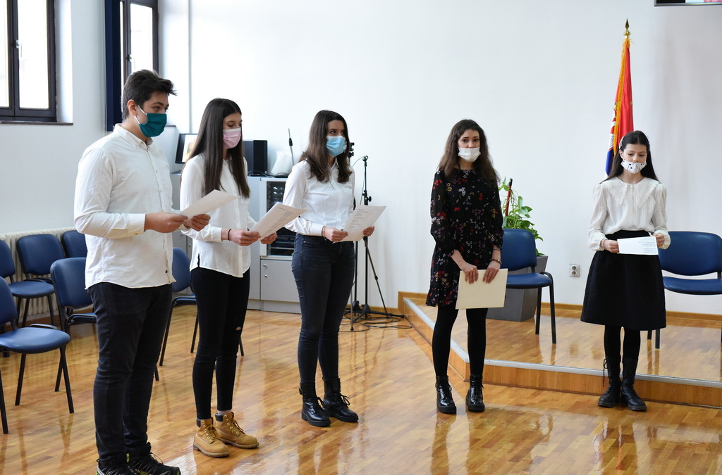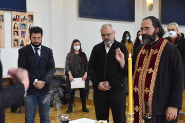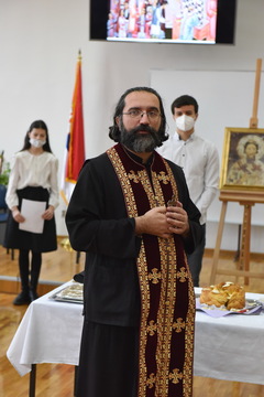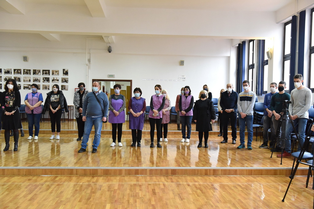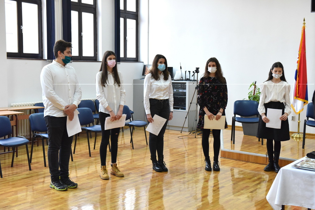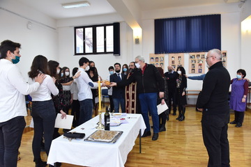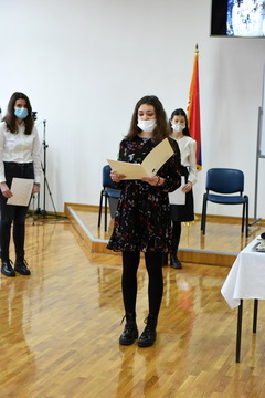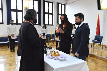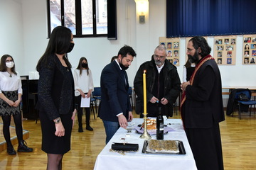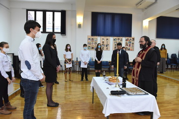 ОпштеДОГАЂАЈИ-фотографијеОве године због тренутне епидемиолошке ситуације нисмо били у могућности да по традицији наше Школе достојно и величанствено, уз Светосавску академију и коктел, заједно окупљени обележимо један од најзначајнијих школских празника. Ученици и запослени у школи, заједно са свештеником Арсенијом Арсенијевићем из Вазнесењске цркве, пресекли су славски колач. Директорка Мирјана Катић је свим присутнима честитала срећну славу и пожелела да је следеће године прославимо у срећнијим околностима. У кратком уметничком програму наступили су ученици МГ. Програм је припремала професорка Јелена Нововић.