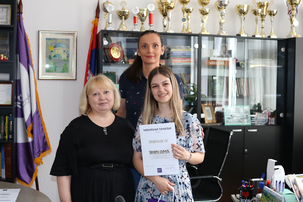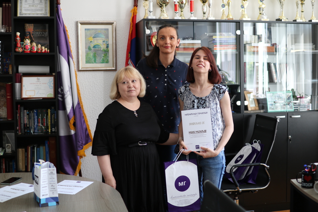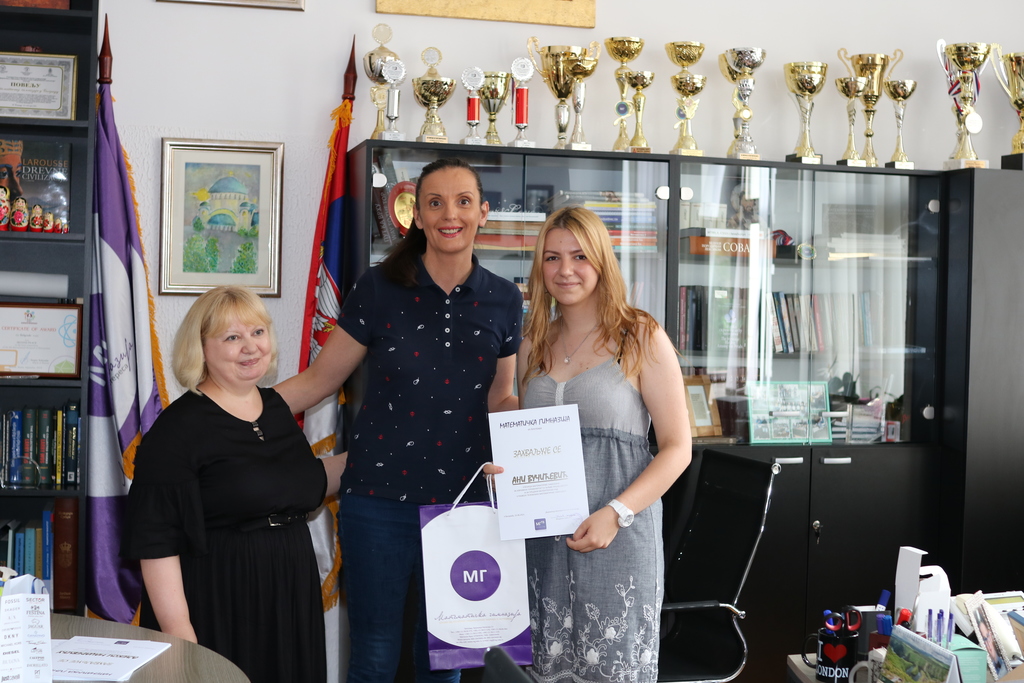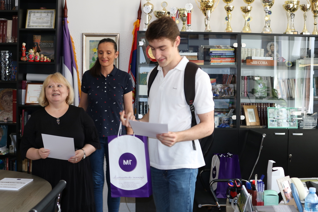 ОпштеДОГАЂАЈИ-фотографијеУ петак, 2. јула 2021. године Мирјана Катић, директорка Математичке гимназије и Светлана Јакшић, супервизор МГ ТВ уручиле су захвалнице екипи МГ ТВ. Захвалнице су уручене ученицима који чине прву поставу МГ ТВ. То су: