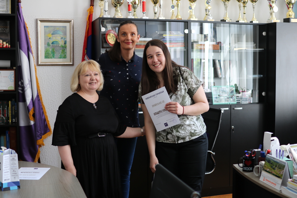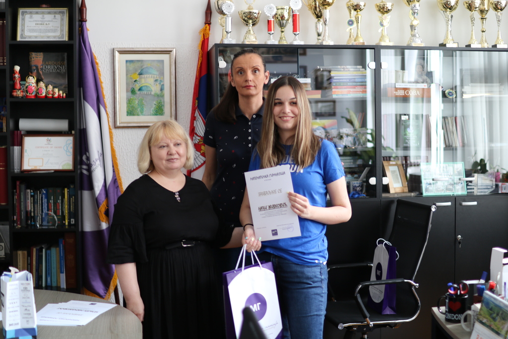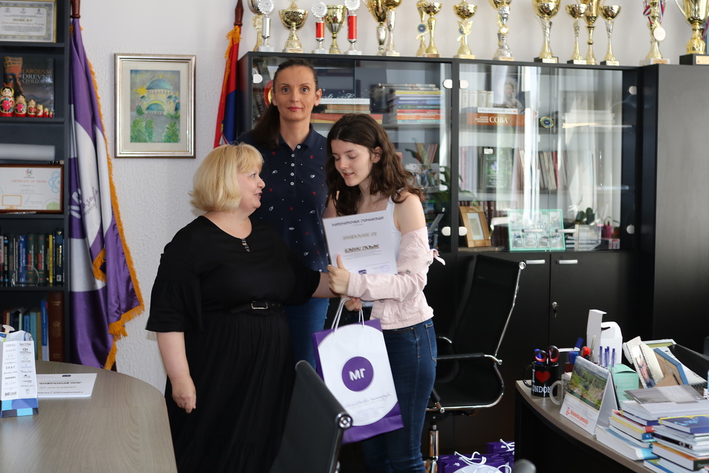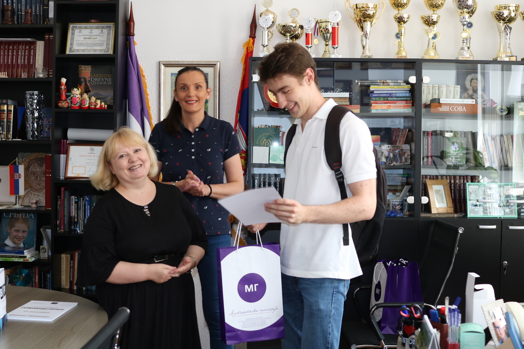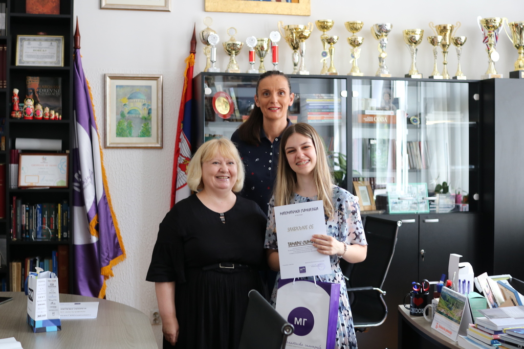 ОпштеДОГАЂАЈИ-фотографијеУ петак, 2. јула 2021. године Мирјана Катић, директорка Математичке гимназије и Светлана Јакшић, супервизор МГ ТВ уручиле су захвалнице екипи МГ ТВ. Захвалнице су уручене ученицима који чине прву поставу МГ ТВ. То су: