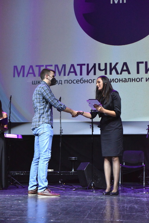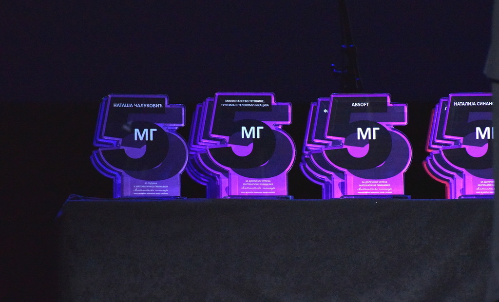 Овом приликом уручене су повеље професорима Наташи Чалуковић, Срђану Огњановићу и Зорану Каделбургу који су 40 година радили у Математичкој гимназији. Повеље су уручене и институцијама и појединцима који су последњих година дали велики допринос у развоју МГ. Повеље су уручене: Министарству трговине, туризма и телекомуникација, Министарству просвете, науке и технолошког развоја, Мајкрософт Развојном центру, Телекому Србија, компанији Монета, АБ Софт-у, Математичком факултету, Електротехничком факултету, Математичком институту САНУ, Центру за промоцију науке, Наталији Синановић, новинарки РТС-а, Александри Дрецун, председници Центра за науку и иновације “Тачке пресека”, Зорану Станојевићу, уреднику у информативном програму РТС-а и Светлани Јакшић, информатичару у МГ. Гостима су се представили олимпијци који су освојили медаље на међународним олимпијадама у последњих пет година.