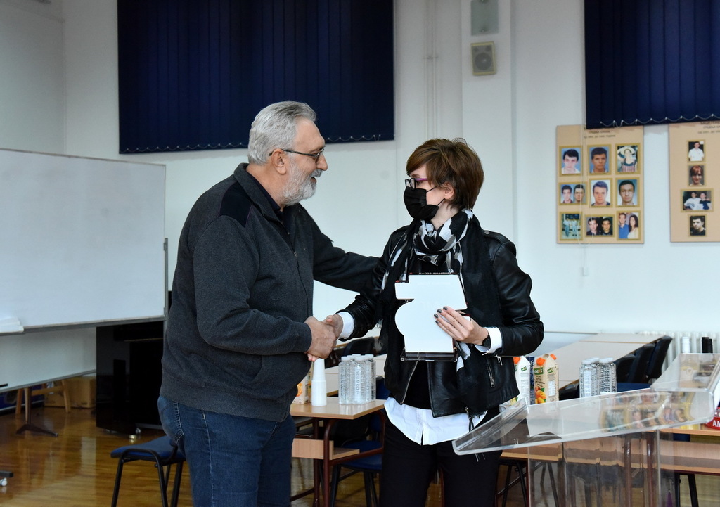 ОпштеДОГАЂАЈИ-фотографијеУ четвртак, 23. септембра 2021. године директорка Мирјана Катић уручила је повеље свим запосленима који раде десет, двадесет или тридесет година у Математичкој гимназији, а поводом јубилеја Школе. Свечане повеље уручене су у свечаној сали Математичке гимназије.