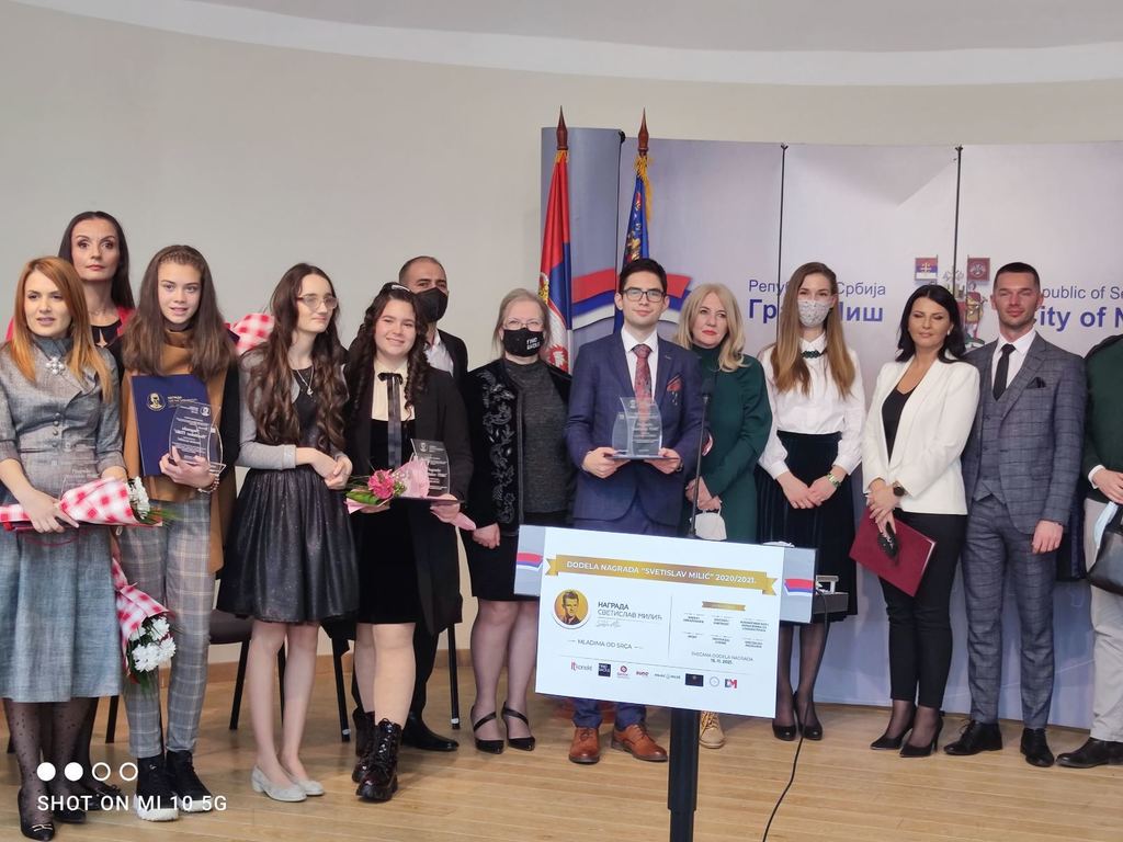 У понедељак, 15. новембра 2021. године у Официрском дому у Нишу уручуна је награда „Светислав Милић – младима од срца“ Математичкој гимназији која је проглашена институцијом године.