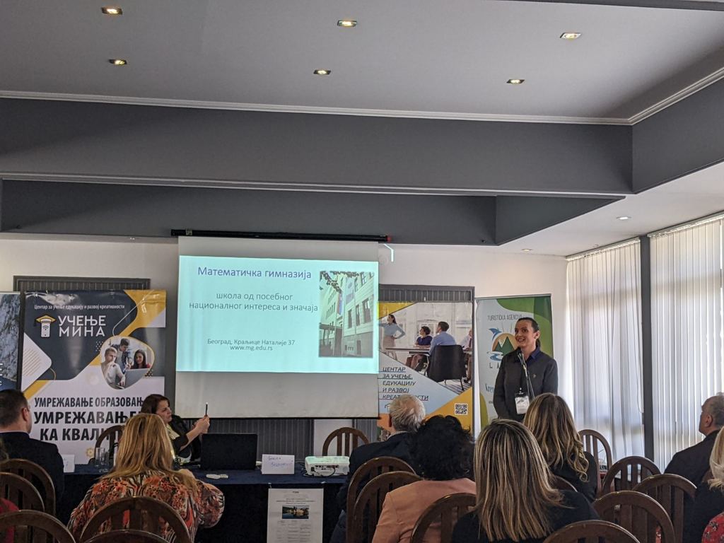ОпштеСеминари и предавањаМирјана Kатић, директор Математиче гимназије учествовала је на Међународној конференцији "Умрежавање образовања - умрежавање ка квалитету 3" која се одржала у Требињу од 16. до 19. марта 2022. године. Директорка је одржала предавање под називом "Kако постати школа/установа образовања 21. века".