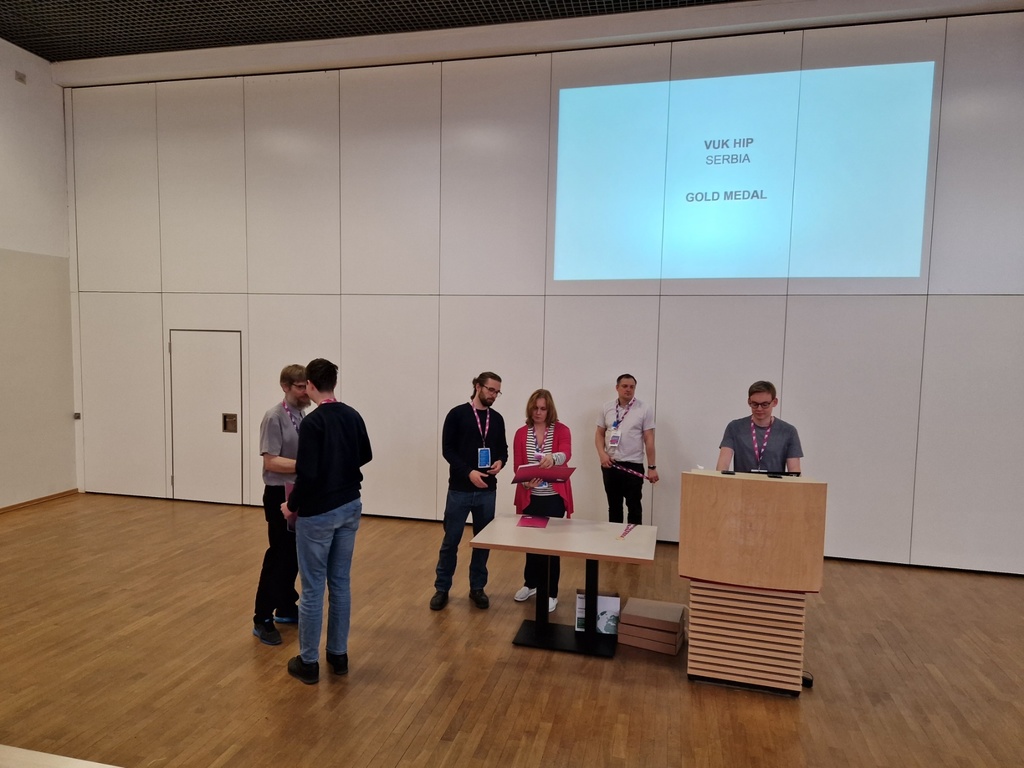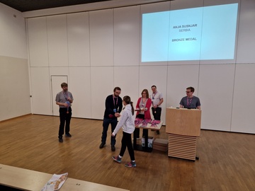 ОпштеМЕЂУНАРОДНА ТАКМИЧЕЊА-фотографијеЕкипа ученика Математичке гимназије, коју су чинили Ања Шушњар, Алекса Сотиров, Вук Хип, Игор Енги и Никола Лакић, остварила је сјајан резултат на Нордијско-Балтичкој олимпијади из физике у Талину у Естонији одржаној од 22. до 24. априла. У конкуренцији око деведесет вршњака из нордијских, балтичких и гостујућих земаља из Европе и Азије ученици Математичке гимназије су освојили четири медаље: