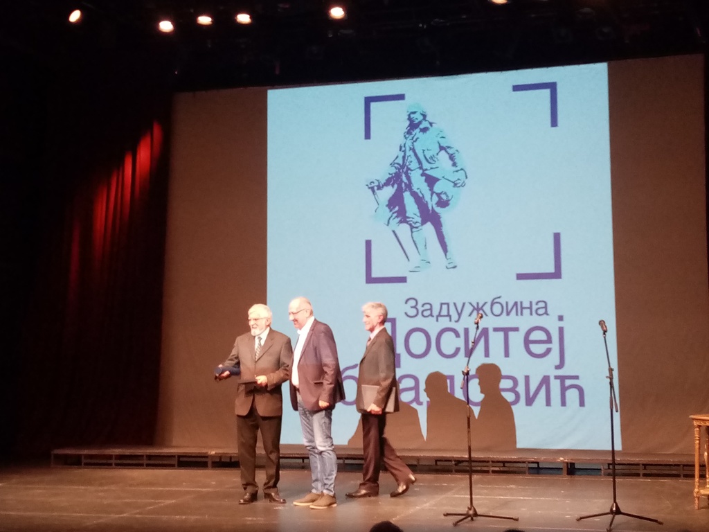 ОпштеДОГАЂАЈИ-фотографијеНа позив Задужбине "Доситеј Обрадовић", ученици одељења 3ц су са професором Урошем Микићем присуствовали свечаној академији поводом доделе Награде "Доситеј Обрадовић" за животно дело академику Данилу Басти. Пригодни уметнички програм одржан је на сцени "Раша Плаовић" Народног позоришта у Београду.