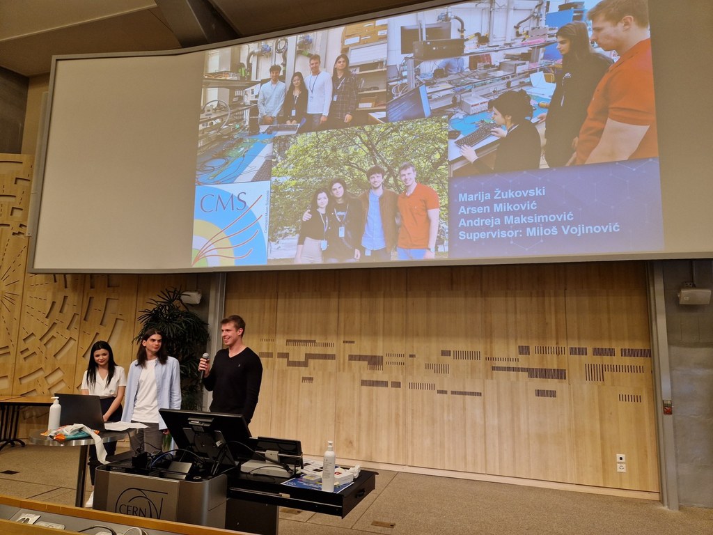 - Арсен Миковић је заједно са Маријом Жуковски и Андрејом Максимовићем радио на пројекту „Electronics DAQ systems for the future High Granularity Calorimeter“ при чему им је супервизор био Милош Војиновић. o Тамара Топалов је заједно са Миленом Станичић и Луком Ђурицом радила на пројекту „Dew Point sensor measurements for ECAL Safety System“ под менторством Лазара Цокића и наше бивше ученице Ирене Вељановић.
