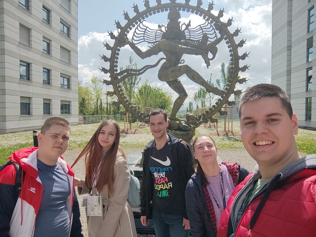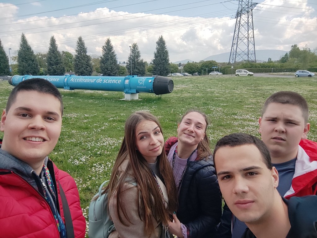 ОпштеДОГАЂАЈИ-фотографијеОд 25.04. до 7.05. 2022. године, по први пут, одржан је програм стручне праксе за ученике средњих школа из Србије HSSIP у Европском центру за нуклеарна истраживања CERN у Женеви. Захваљујући томе што је наша земља чланица ЦЕРН-а од 2019. године, у овом јединственом програму имало је прилику да учествује 24 средњошколца од који је шесторо ученика из Математичке гимназије и то Ана Манојловић, Филип Бајрактари и Марко Матовић из IVа одељења и Тамара Топалов, Арсен Миковић и Милош Пурић из IVd. Заједно са осталим ученицима из целе Србије њих шесторо су имали прилике да посете највеће лабораторије у ЦЕРН-у, да чују сјајна предавања светских стручњака међу којима су били и научници из наше земље и на крају да учествују у истраживачким пројектима под супервизијом опет наших младих научника. На крају двонедељне праксе ученици су презентовали своје пројекте пред нашим научницима који раде у ЦЕРН-у као и пред амбасадором Републике Србије при Уједињеним нацијама Дејаном Златановићем.