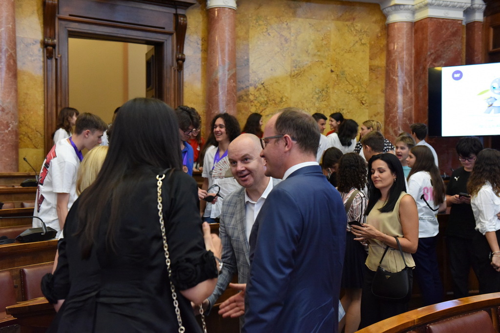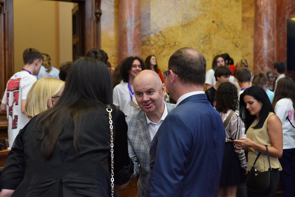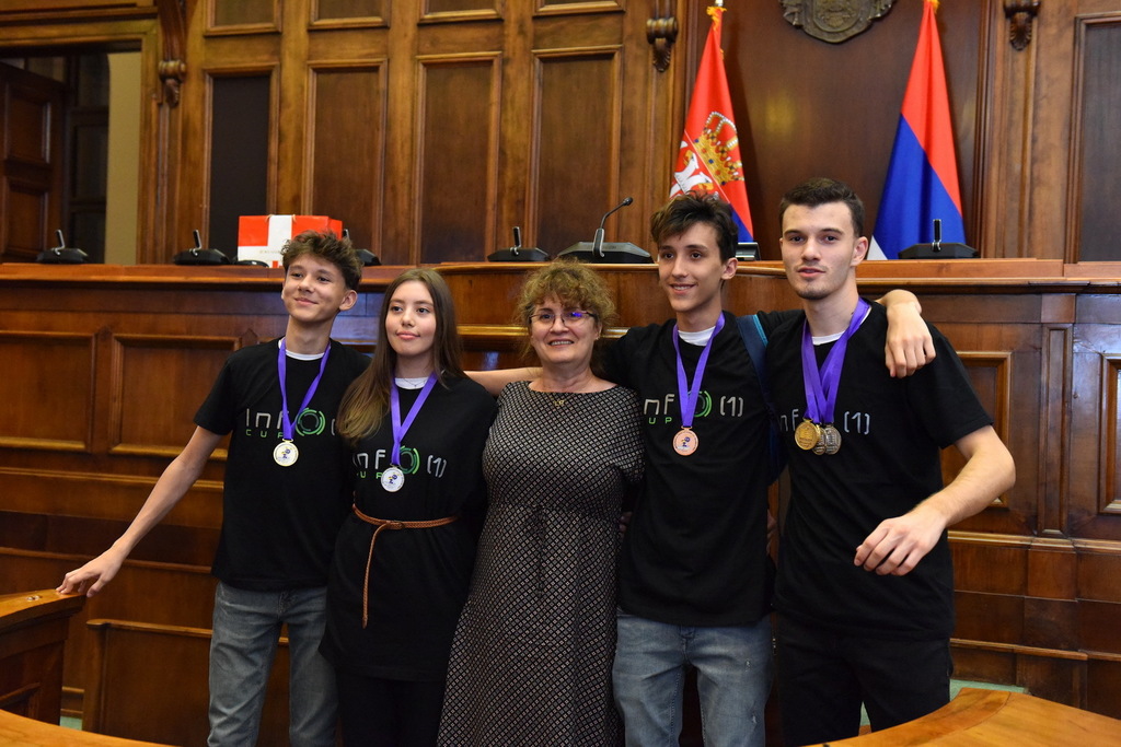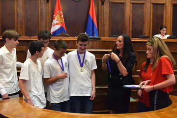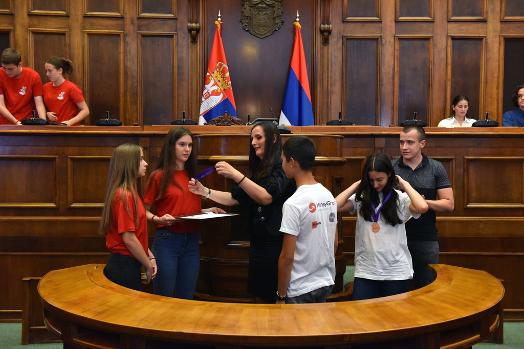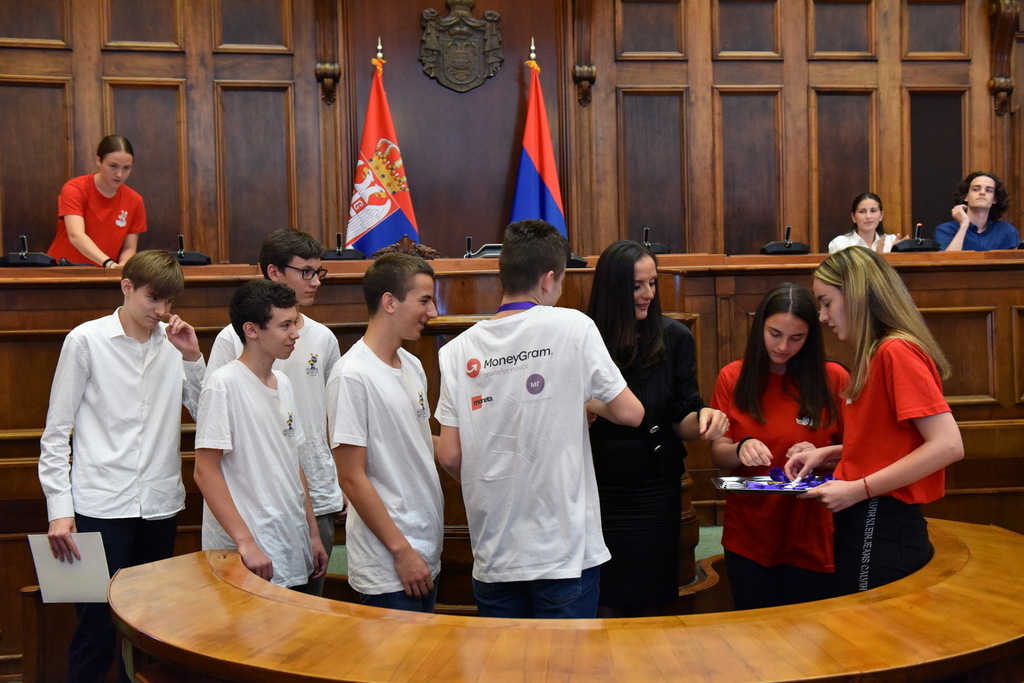 ОпштеМЕЂУНАРОДНА ТАКМИЧЕЊА-фотографијеУ четвртак, 30. јуна 2022. године у Народној скупштини Републике Србије свечано је затворен десети Куп Математичке гимназије. Гостима се обратила директорка Мирјана Катић, господин Ивица Дачић, председник Народне Скупштине Републике Србије и господин Милан Добријевић, државни секретар у Министарству трговине, туризма и телекомуникација. Министарство трговине, туризма и телекомуникација је и ове године било покровитељ Купа. Генерални спонзор Купа је компанија Moneta Financial Services doo. Куп су финансијски помогли и компаније HTEC Group, АБ Софт и Фондација "Сања Миленковић".
