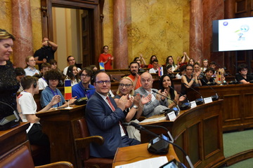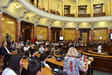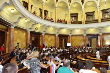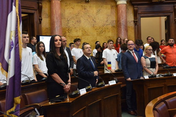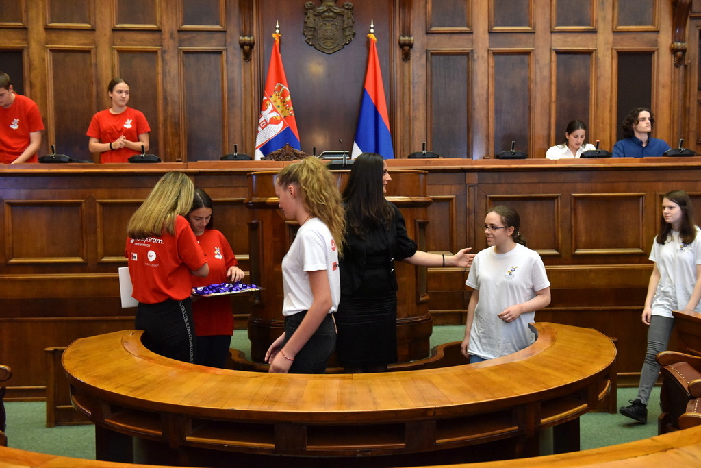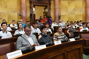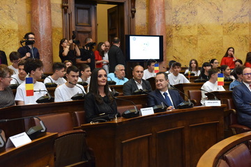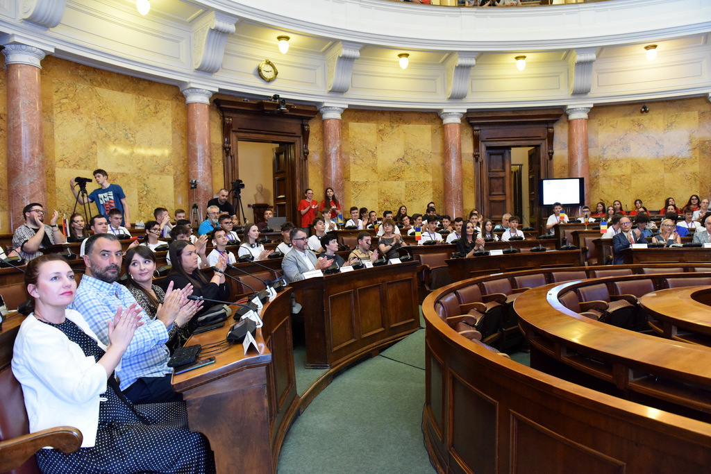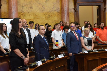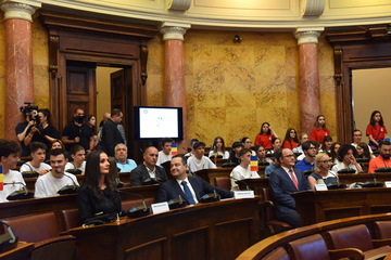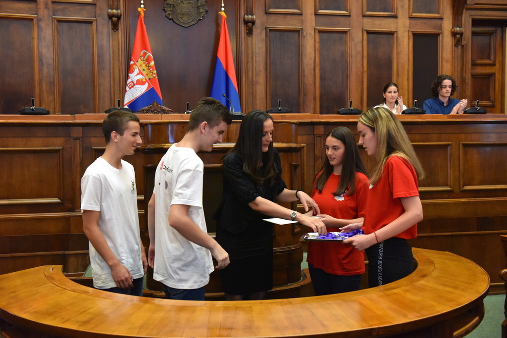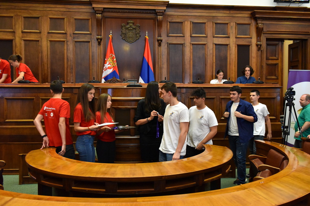 ОпштеМЕЂУНАРОДНА ТАКМИЧЕЊА-фотографијеУ четвртак, 30. јуна 2022. године у Народној скупштини Републике Србије свечано је затворен десети Куп Математичке гимназије. Гостима се обратила директорка Мирјана Катић, господин Ивица Дачић, председник Народне Скупштине Републике Србије и господин Милан Добријевић, државни секретар у Министарству трговине, туризма и телекомуникација. Министарство трговине, туризма и телекомуникација је и ове године било покровитељ Купа. Генерални спонзор Купа је компанија Moneta Financial Services doo. Куп су финансијски помогли и компаније HTEC Group, АБ Софт и Фондација "Сања Миленковић".