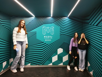 ОпштеДОГАЂАЈИ-фотографијеГрупа ученика другог разреда Математичке гимназије и предметни наставник Мирјана Репац посетили су Музеј илузија. Свет оптичких илузија и принципе на којима почивају испитивали су кроз бројне дводимензионалне слике и цртеже и пратили ефекте које имају на наш вид и мозак. Открили су три компоненте светлости сенке у Соби боја, изазивали сопствени центар за равнотежу у Вортекс-тунелу, разматрали деловање искривљене Ејмсове собе и направили сјајне фотографије за успомену у Обрнутој и Бескрајној соби.