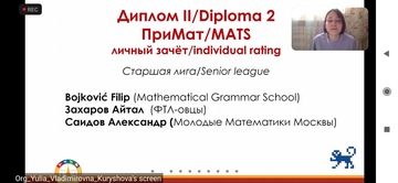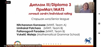 ОпштеУченици Математичке гимназије су ове године учествовали, четврти пут за редом, на Међународном турниру у математичком моделирању у организацији Advanced Education Science Centre of Moscow State University. Такмичење је и ове године одржано на даљину, услед тренутне ситуације, од 29.10. до 6.11.