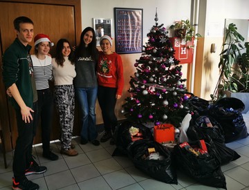 ОпштеДОГАЂАЈИ-фотографијеПретпразнично расположење у Математичкој гимназији подстакли смо традиционалном новогодишњом хуманитарном акцијом коју организујемо у сарадњи са општинским Црвеним крстом под називом "ЈЕДАН ПАКЕТИЋ, МНОГО ЉУБАВИ". Слаткиши, грицкалице и играчке намењени су социјално угроженој и деци без родитељског старања који живе на територији наше општине, као и деци на лечењу у Ортопедској болници "Бањица" и Институту за ментално здравље.