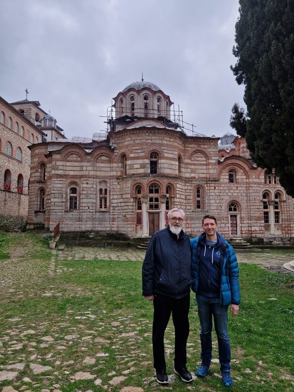 ОпштеДОГАЂАЈИ-фотографијеМеђународна сарадњаПрофесори Математичке гимназије Жељко Лежаја и Иван Станић имали су част да у оквиру сарадње са организацијом "Дар" посете манастир Хиландар од 24. до 28. јануара 2023. и присуствују свечаној прослави празника Светог Саве.