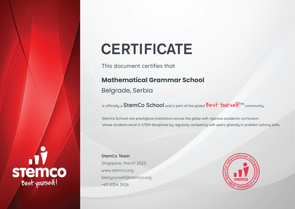 ОпштеSTEM CO је мећународно такмичење из биологије, хемије, математике и физике на којем је Математичка гимназија ове године учествовала по први пут. У зимском циклусу овог такмичења учествовало је преко 2100 ученика из 25 земаља из целог света, а такмичење је реализовано на начин да су ученици радили такмичење у својим земљама под надзором својих наставника.