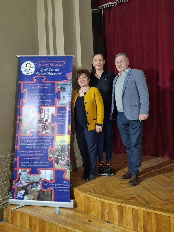 ОпштеМеђународна сарадњаМирјана Kатић је у оквиру међународног симпозијума директора "Значај директора као лидера у развоју образовно-васпитне установе" посетила теоретску гимназију "Доситеј Обрадовић" у Темишвару у којој се настава изводи на српском језику. У току разговора са директорком Александром Стојков договорила је наставак сарадње Математичке гимназије и гимназије "Доситеј Обрадовић" као и учествовање у заједничком пројекту.