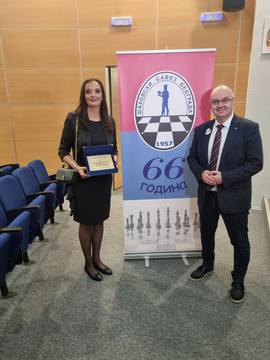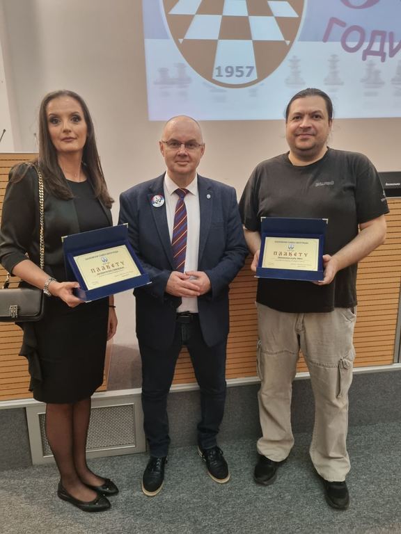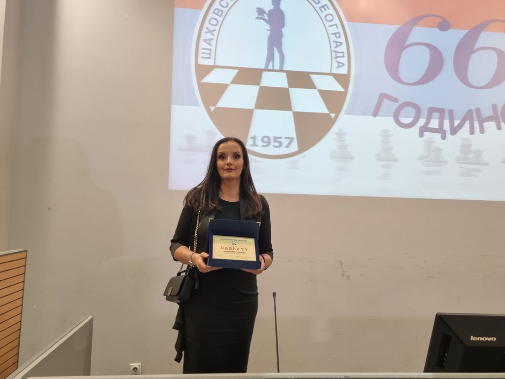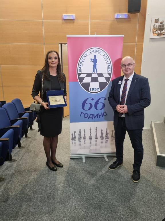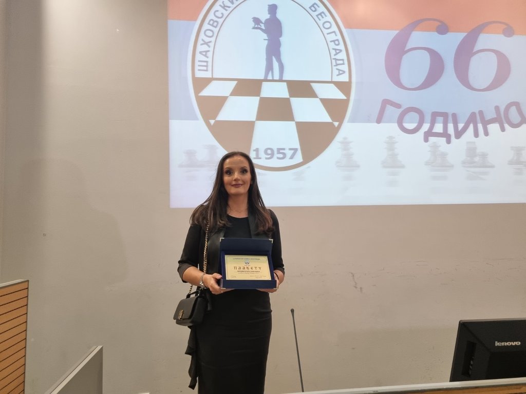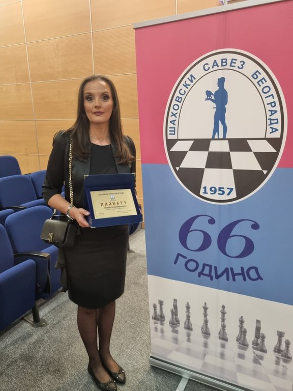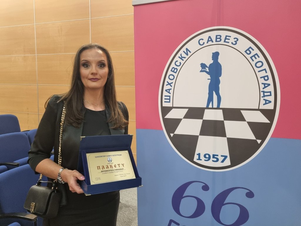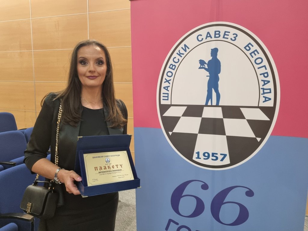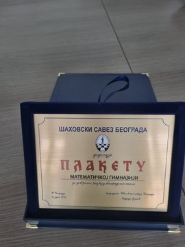 ОпштеДОГАЂАЈИ-фотографијеНАГРАДЕ И ПРИЗНАЊА-фотографијеНа свечаности одржаној у сали општине Стари град поводом 66 година постојања Шаховског савеза Београда Математичка гимназија у Београду је добила плакету за допринос повратку шаха у основне и средње школе у Србији и организацији међународног Осмомартовског турнира шахисткиња.