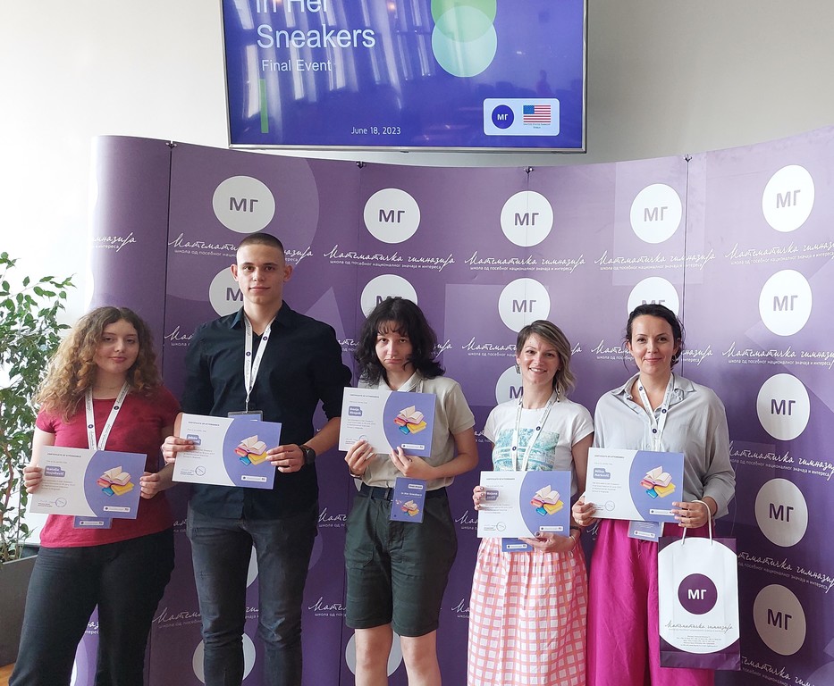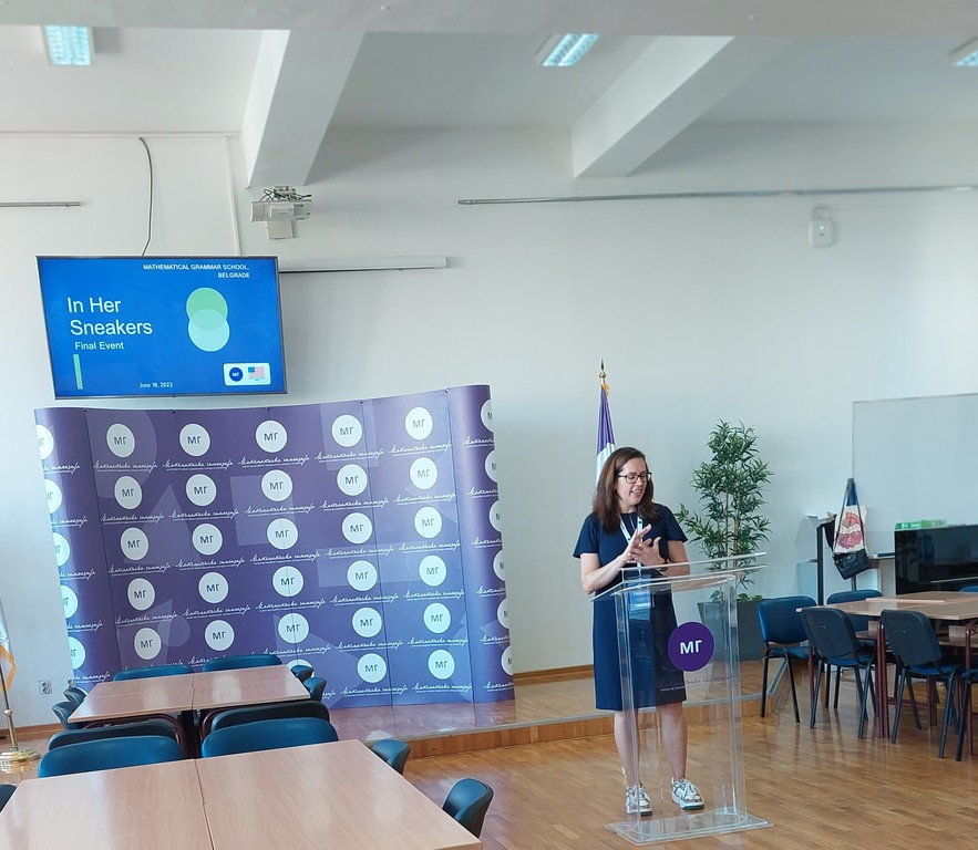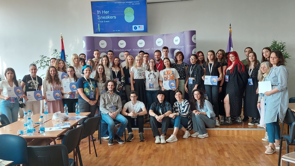 ОпштеДОГАЂАЈИ-фотографијеУ свечаној сали Математичке гимназије одржана је свечаност поводом завршетка пројекта „У њеним патикама“. Реч је о онлајн читалачком клубу који је радио 9 месеци и окупио око 70 ученика и наставника из Сомбора, Новог Сада, Бечеја, Бајине Баште, Бујановца, Крагујевца, Ниша и Београда.