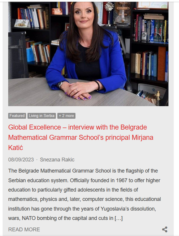 Директорка Мирјана Катић је дала интервју за "Српски монитор". Интервју се може прочитати на овом линку.
