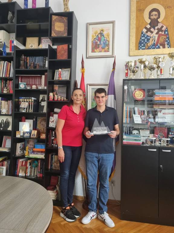 Проф. Ђорђевић је уручио освојене медаље учесницима прошлогодишњег онлајн такмичења Јани Шишовић, Јовану Милићеву и Јовану Николићу. Потом је уручио специјално признање овогодишњем апсолутном победнику такмичења Јанку Поповићу.
