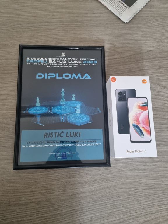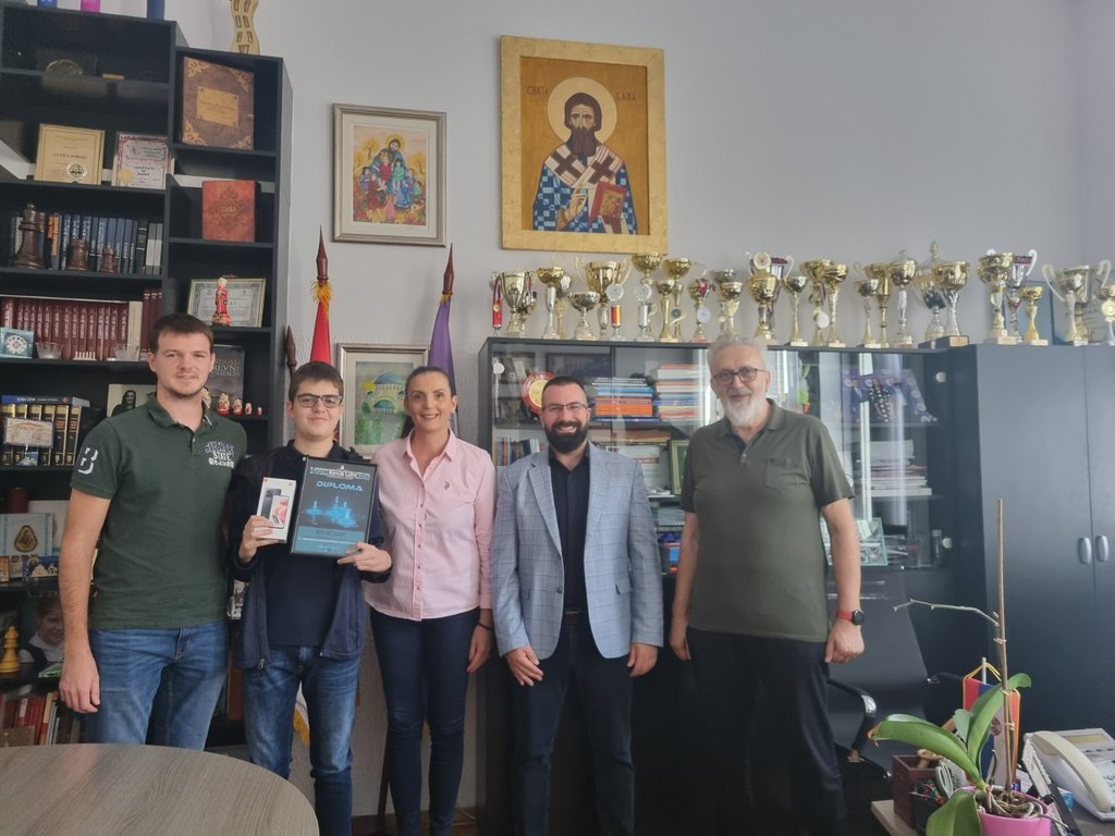 Повод је био уручење мобилног телефона као специјалне награде за ученика Луку Ристића који је на 3. Међународном фестивалу "Трофеј Бањалуке 2023", поред освојеног шампионског пехара у екипној и појединачној конкуренцији до 16 година, доминантно победио и у решавању шаховских тактика.
