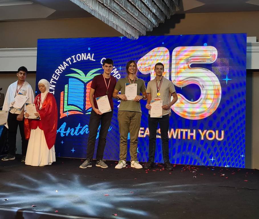 На XV Mеђународној олимпијади у знању ((XV Uluslararası Bilgi Olimpiyatları), која се од 29. октобра до 5. новембра одржава у Анталији - Турска, ученици Математичке гимназије у Београду - Вукашин Бабић (математика и физика), Стефан Шебез (математика), Гвозден Лапчевић (математика) и Јанко Поповић (хемија) освојили су 5 медаља и то три златне и две сребрне.