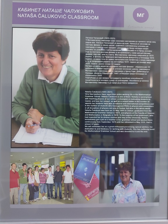 У уторак, 12. децембра 2023. године уз окупљену родбину, пријатеље и колектив Математичке гимназије кабинет физике је и званично понео име наше драге професорке Наташе Чалуковић.