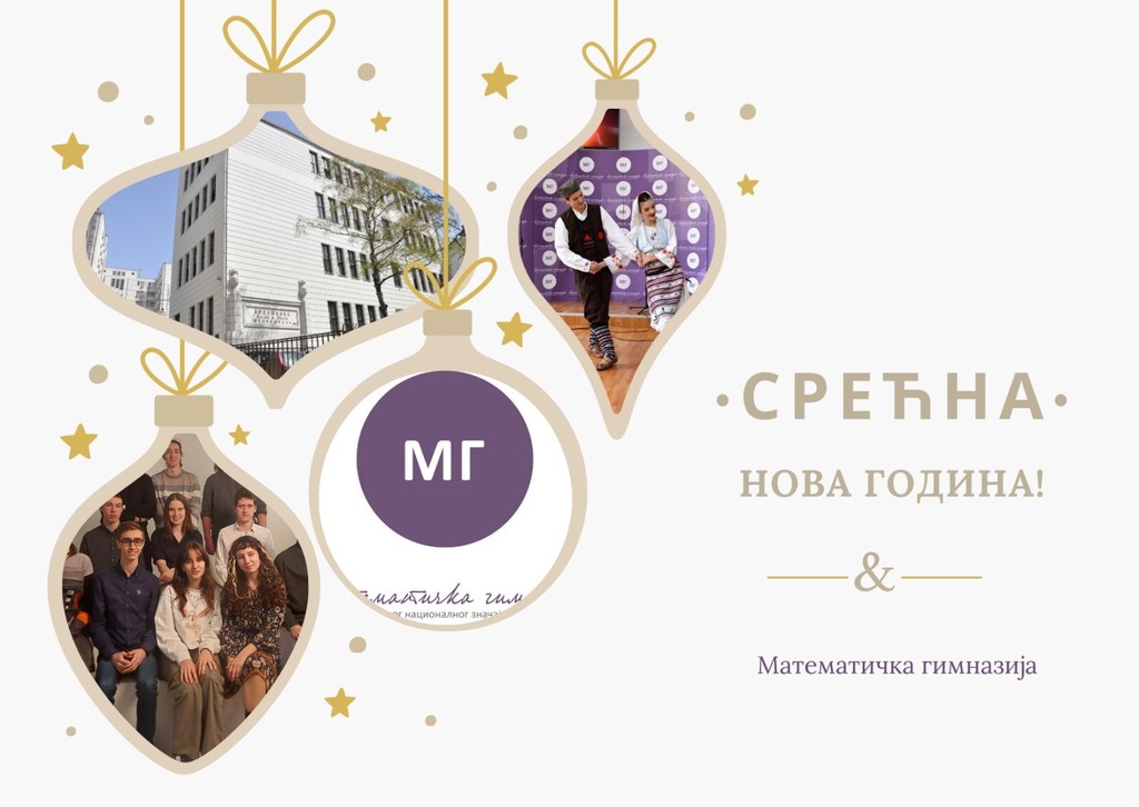 Срећна нова 2024. година30. децембар 2023. 14:44:41ОпштеСрећну нову 2024. годину желе Вам ученици и колектив Математичке гимназије! Слике