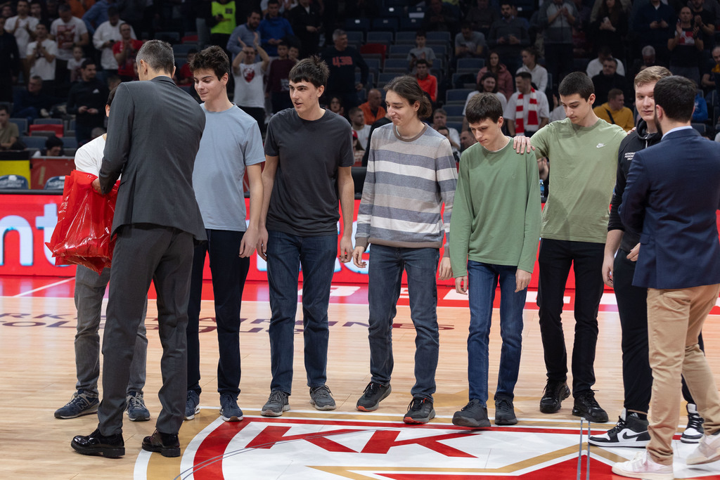 ОпштеДОГАЂАЈИ-фотографијеУченике Математичке гимназије који су освојили седам медаља на Жаутиковској олимпијади угостио је Кошаркашки клуб Црвена звезда на утакмици Црвене звезде и Басконије у утакмици 22. кола Евролиге у Београдској Арени.