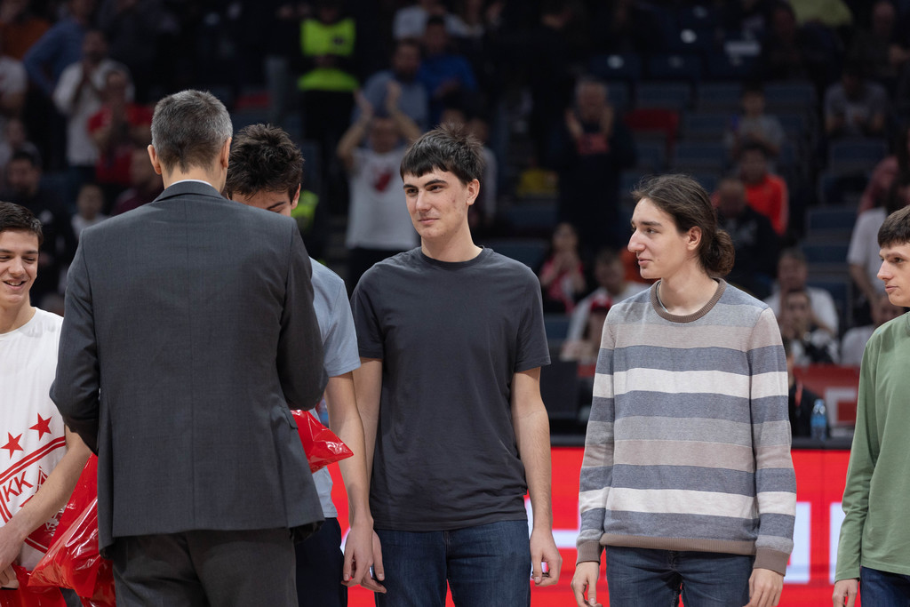 Шампионску екипу Математичке гимназије поздравило је овацијама преко 20 хиљада људи на полувремену утакмице, када им је испред Kлуба, поклоне уручио спортски директор Милан Дозет.