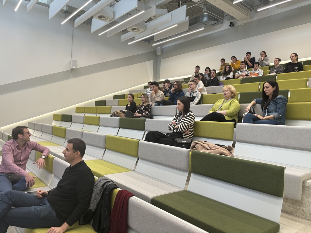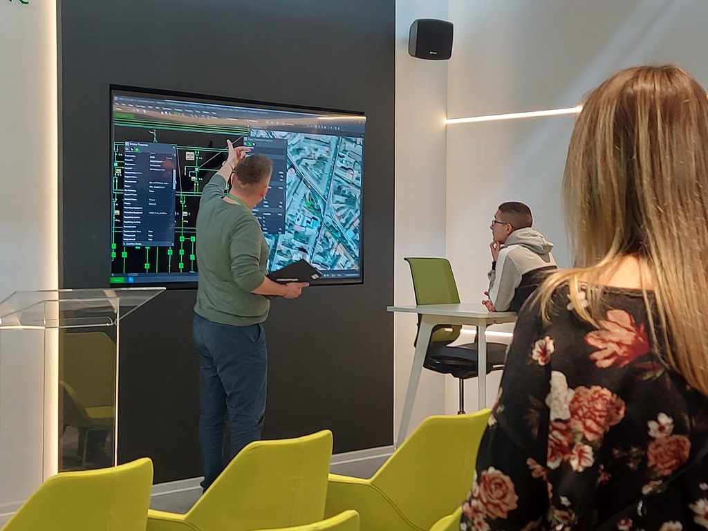 Домаћини су провели наше ученике кроз овај центар који је опремљен по најбољим стандардима технологије и енергетске ефикасности. У центру ради много наших бивших ученика, и они су, као и њихове колеге, били расположени да током обиласка причају о пројектима на којима раде.