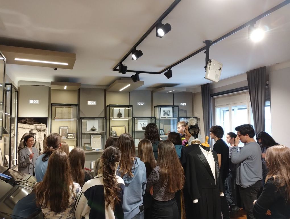 ОпштеДОГАЂАЈИ-фотографијеУченици одељења 3а су са професором Урошем Микићем посетили Спомен-музеј Иве Андрића и тако обележили март као месец српског језика. Овом приликом ученици су се упознали са богатом поставком ове важне културне институције, као и са занимљивим детаљима из живота нашег прослављеног нобеловца.