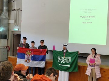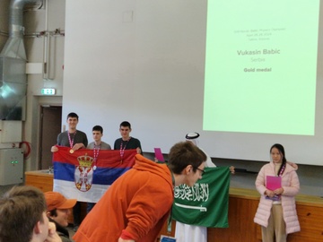 ОпштеМЕЂУНАРОДНА ТАКМИЧЕЊА-фотографијеОд 26. до 28. априла одржана је Нордијско-балтичка олимпијада из физике у Талину у Естонији. На такмичењу је учествовало 104 ученика из земаља организатора Естоније, Финске, Шведске и Летоније као и из Вијетнама, Грузије, Саудијске Арабије, Литваније и Швајцарске.