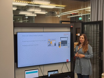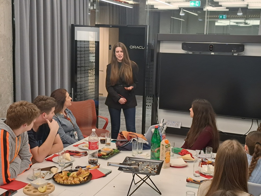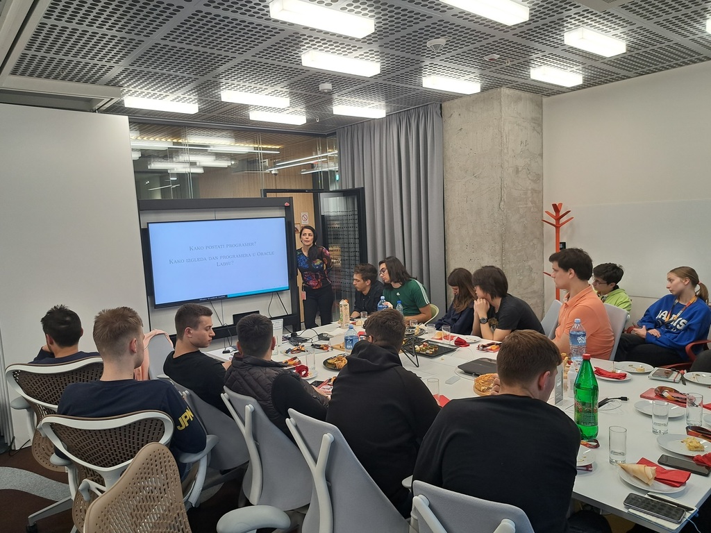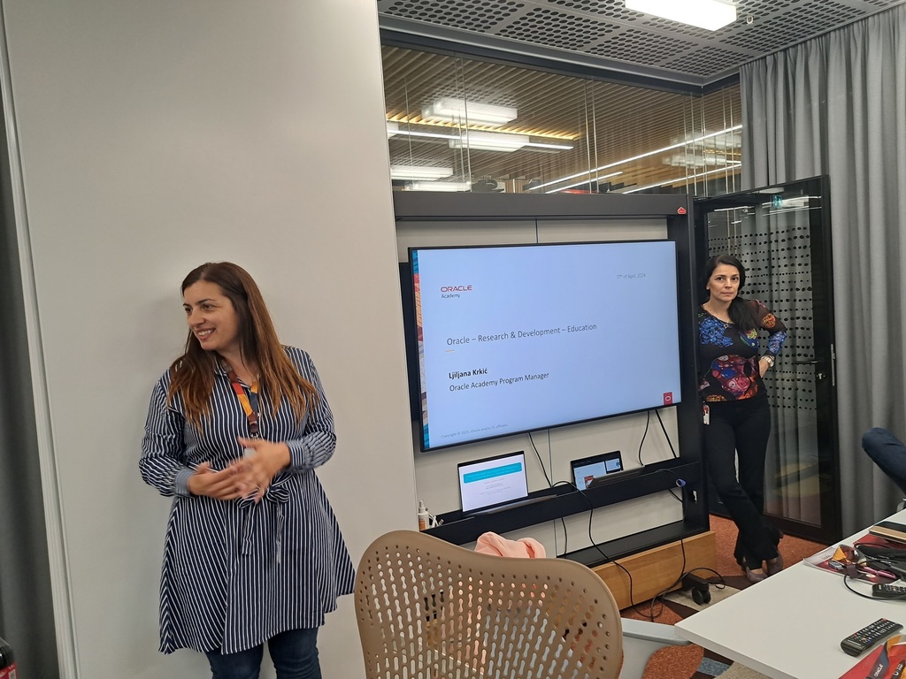 Током посете је Љиљана Кркић, Oracle Academy Program Manager, упознала наше ученике са компанијом Oraclе и чиме се компанија бави. Поред тога је било доста речи о значају образовања и образовном програму Oracle Academy.