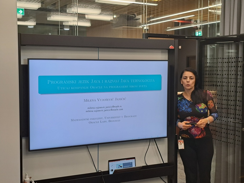 Проф. др Милена Вујошевић Јаничић, Principal Researcher и ванредна професорка Математичког факултета Универзитета у Београду, је одржала предавање посвећено преводиоцима. У оквиру сарадње Математичког факултета и огранка компаније Oracle Labs који се бави развојем и истраживањима, студенти мастер студија раде на развоју преводиоца GraalVM.