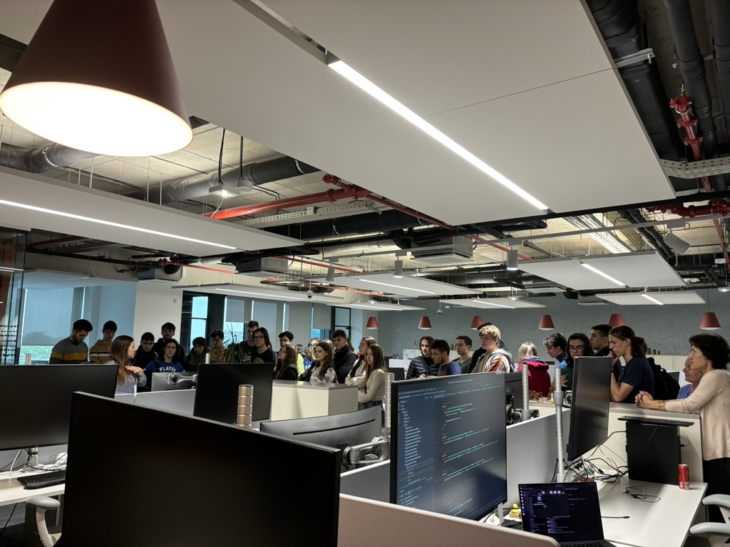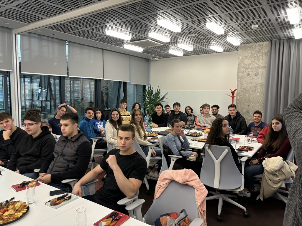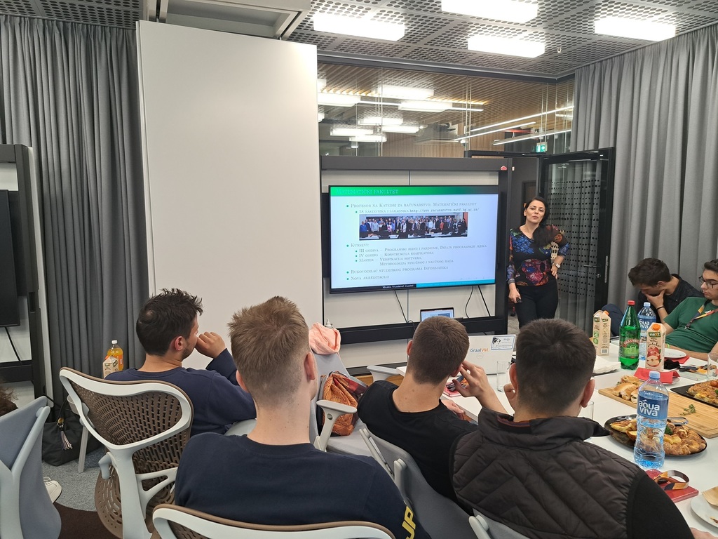 Милица Карличић, Researcher, студенткиња мастер студија на Математичком факултету Универзитета у Београду, је нашим ученицима испричала из свог искуства како изгледа пријава за посао и процес интервјуа, као и то како изгледа један радни дан програмера.