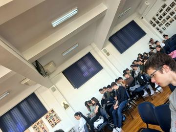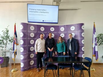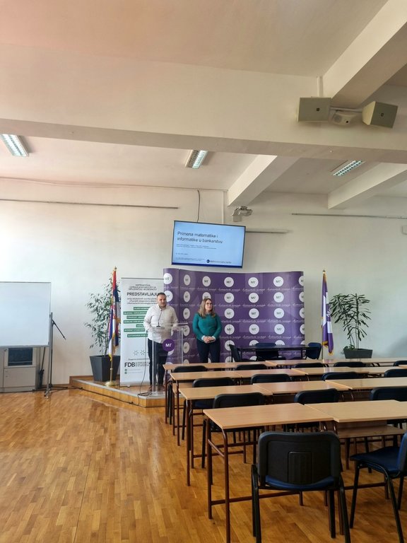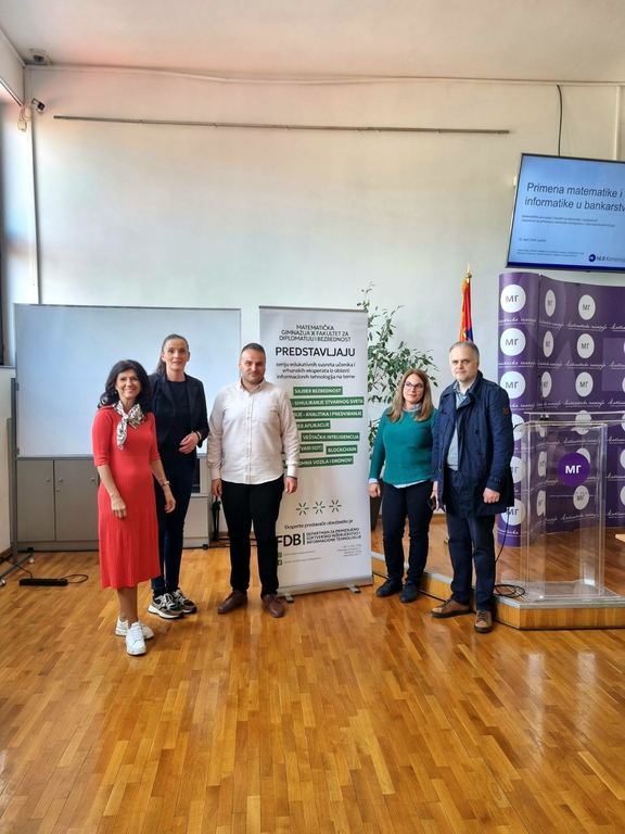 ОпштеСеминари и предавањаУ оквиру сарадње МГ и Факултета за дипломатију и безбедност, у понедељак, 22. априла 2024. године у свечаној сали Математичке гимназије одржано је предавање под називом „Примена математике и информатике у банкарству“.