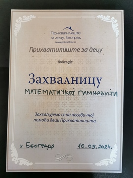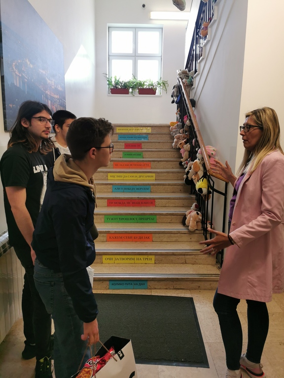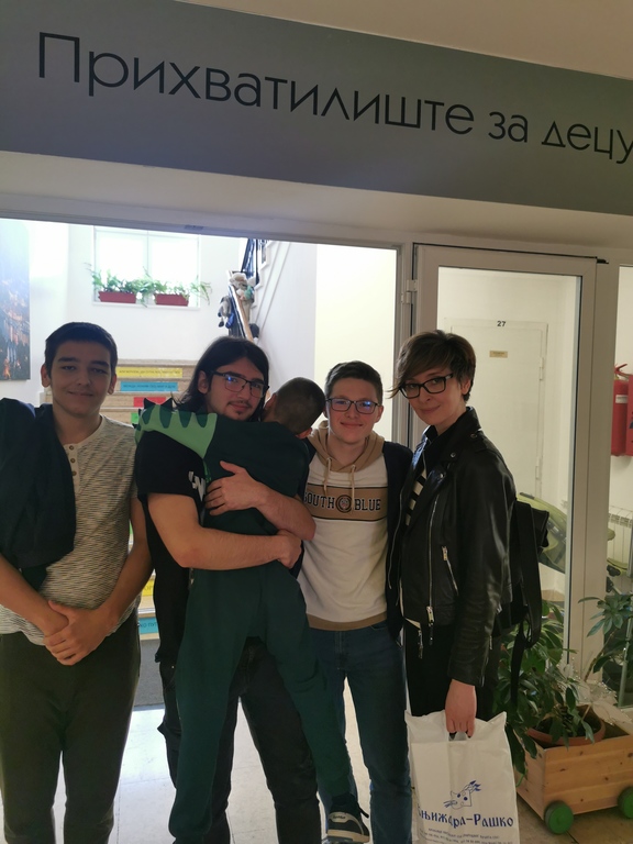 Ученици 2ц Михаило Алексић и Урош Алексић, као и Алекса Чеперковић из 2а су са психологом школе Мирјаном Репац посетили Прихватилиште у петак, 10. маја и уручили прикупљене књиге, играчке и школски прибор. Захваљујемо се свима који су узели учешћа у акцији.