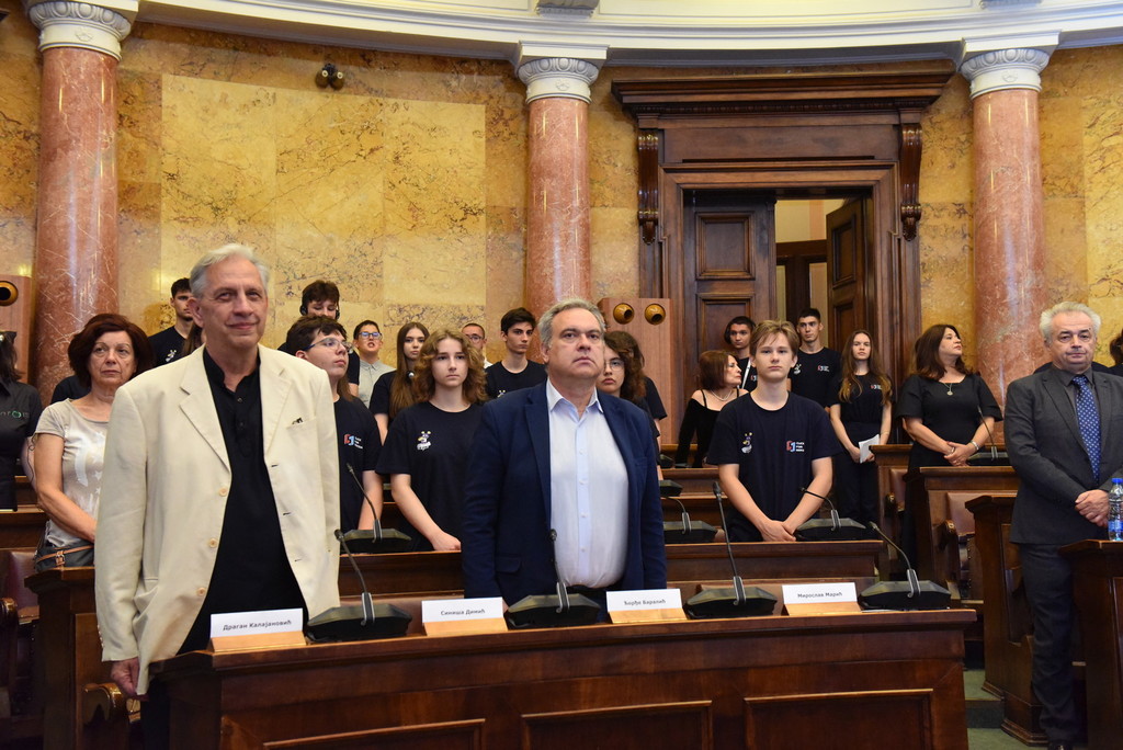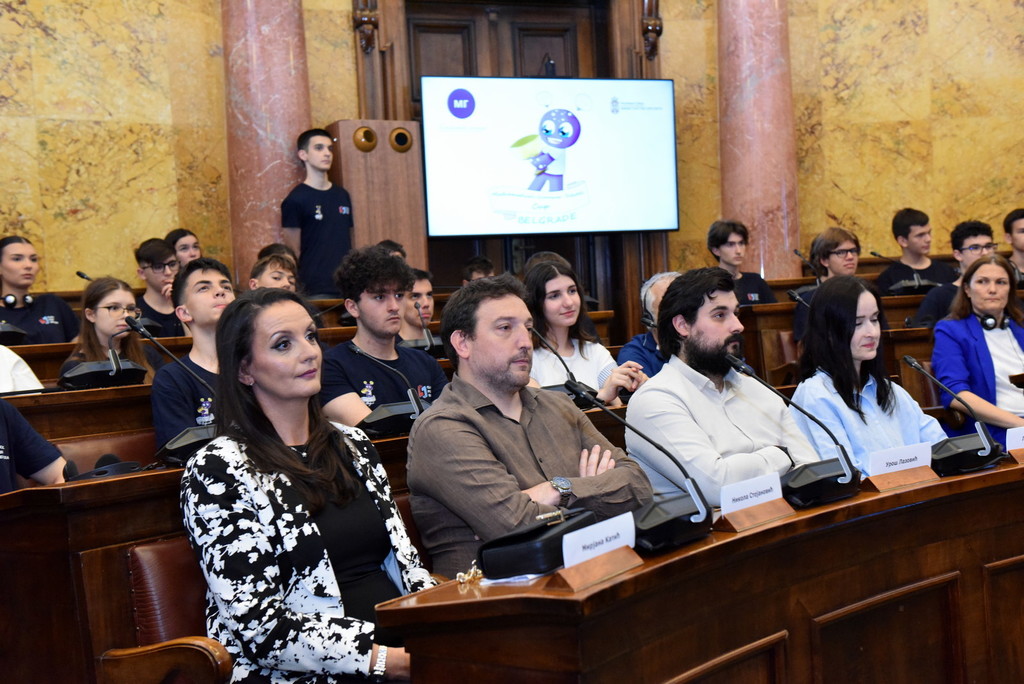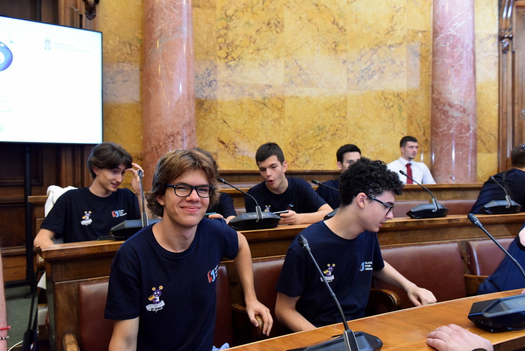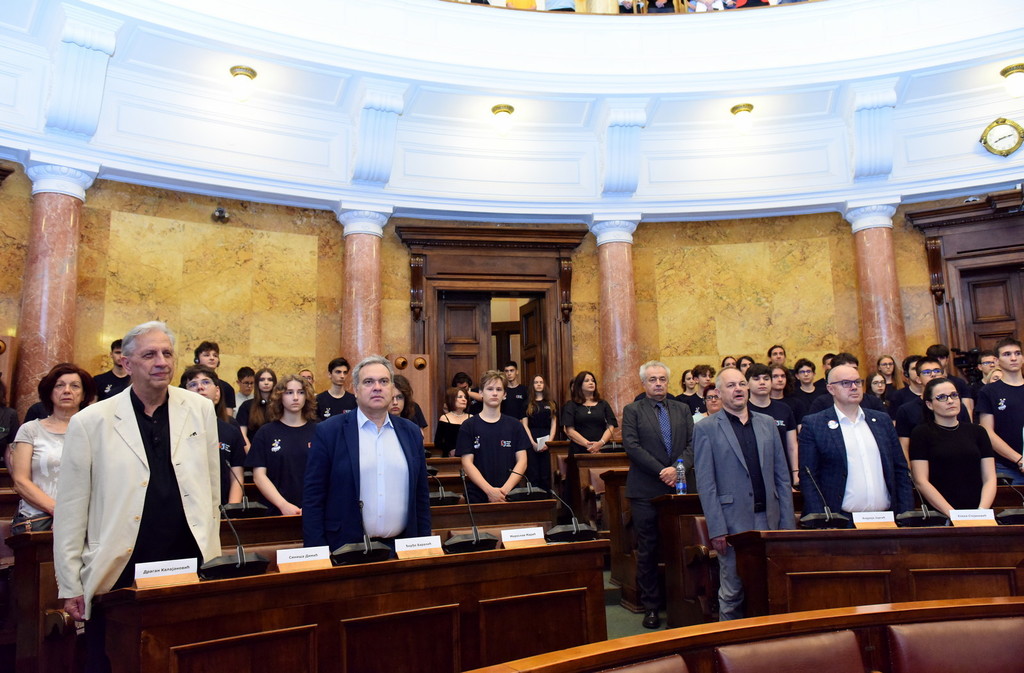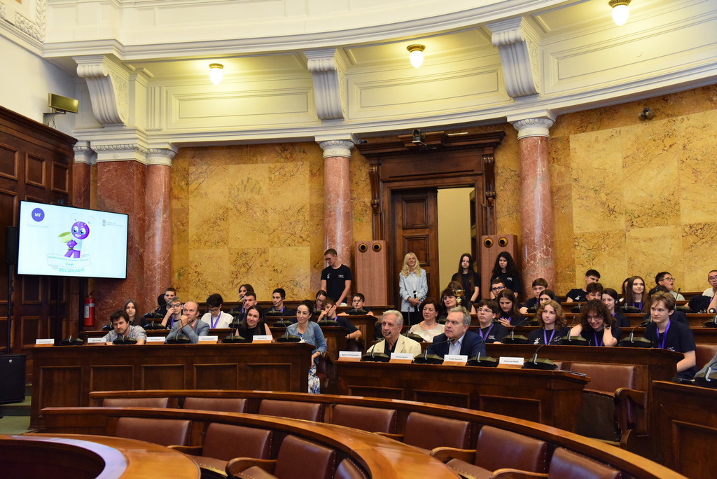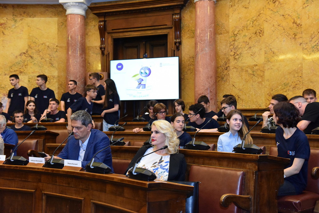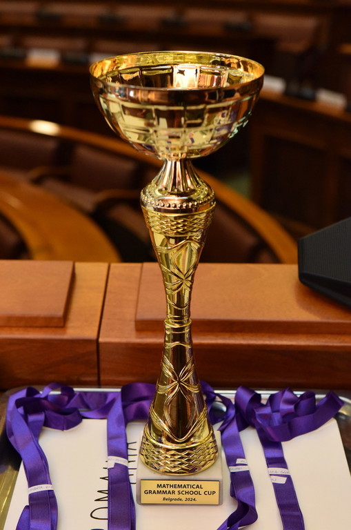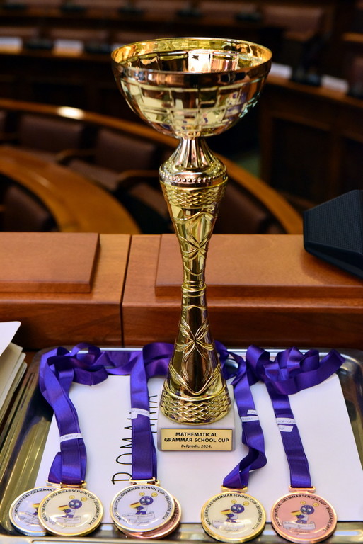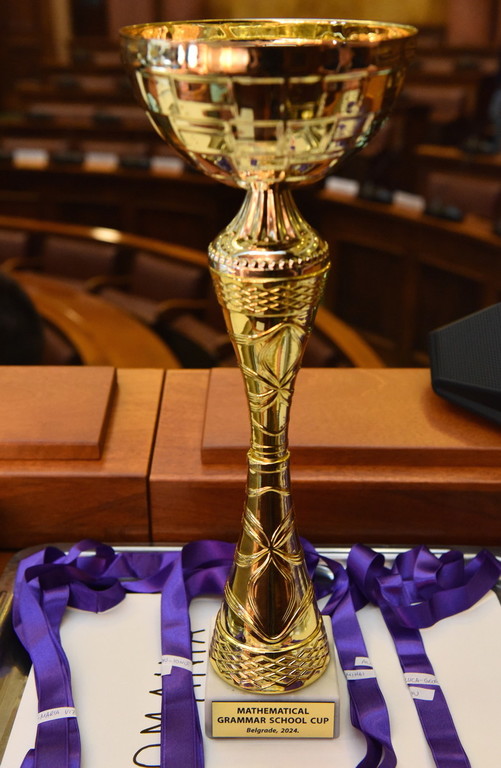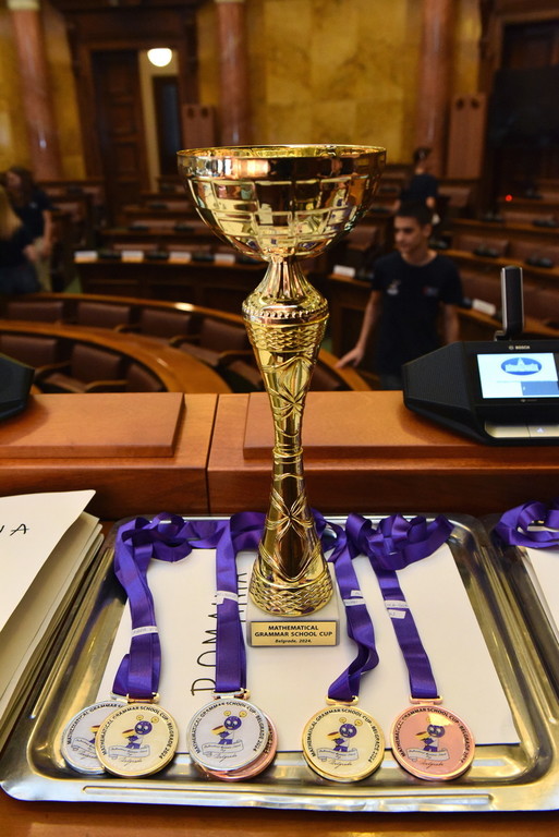 ОпштеМЕЂУНАРОДНА ТАКМИЧЕЊА-фотографијеУ среду, 26. јуна 2024. године у Народној скупштини Републике Србије свечано је затворен дванаести Куп Математичке гимназије. Гостима се обратила директорка Мирјана Катић. Министарство просвете је и ове године било покровитељ Купа. Куп су финансијски помогли: непрофитна организација “Клик за Србију”, компанија “Бамби”, Фондација “Сања Миленковић”, компанија “АБ Софт” и компанија Wargaming.