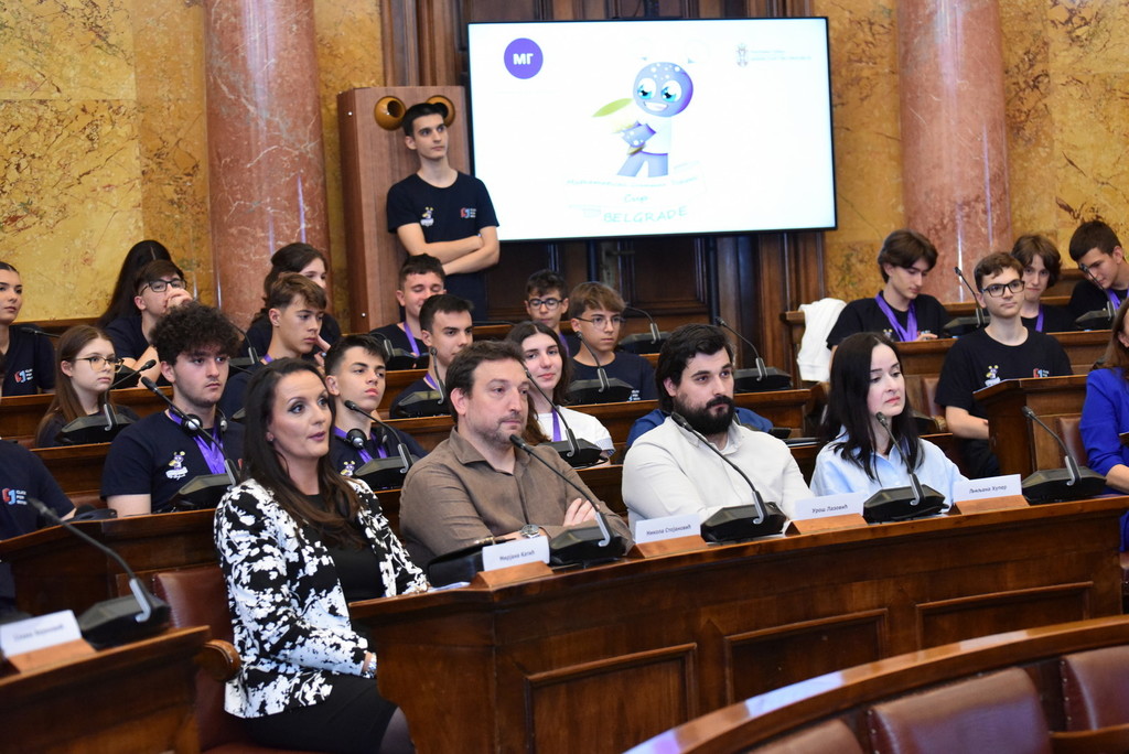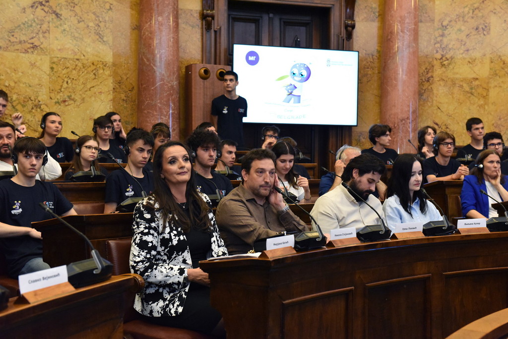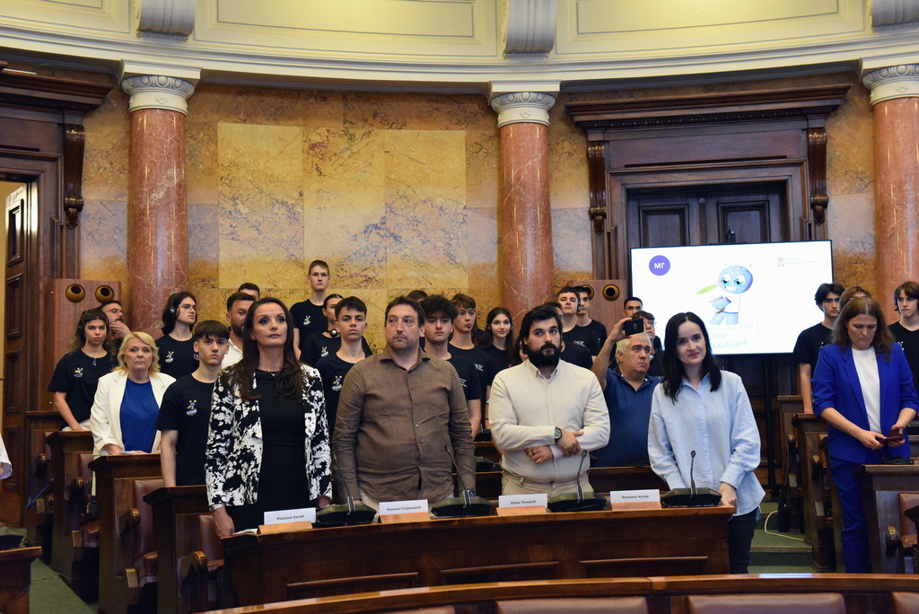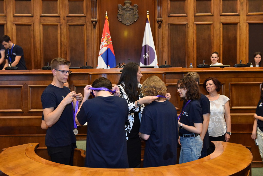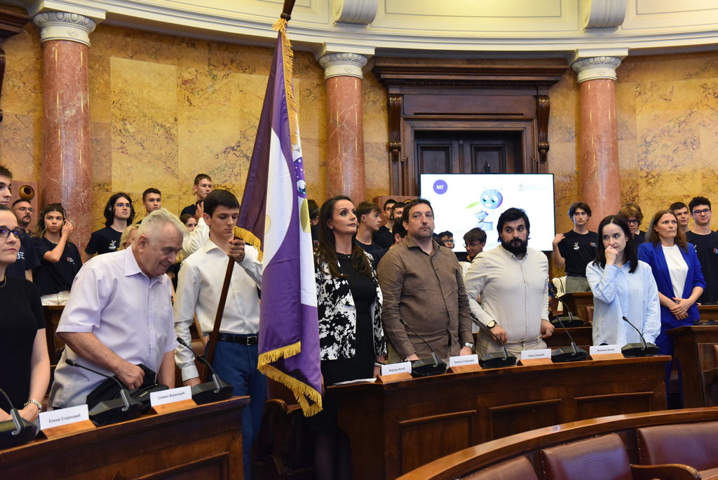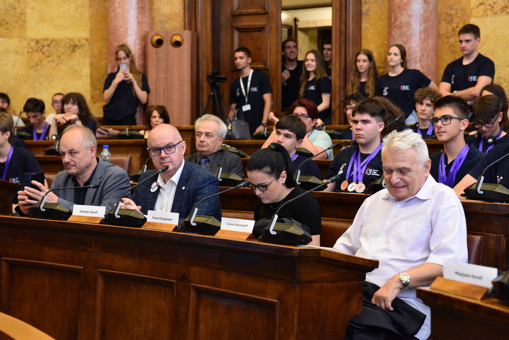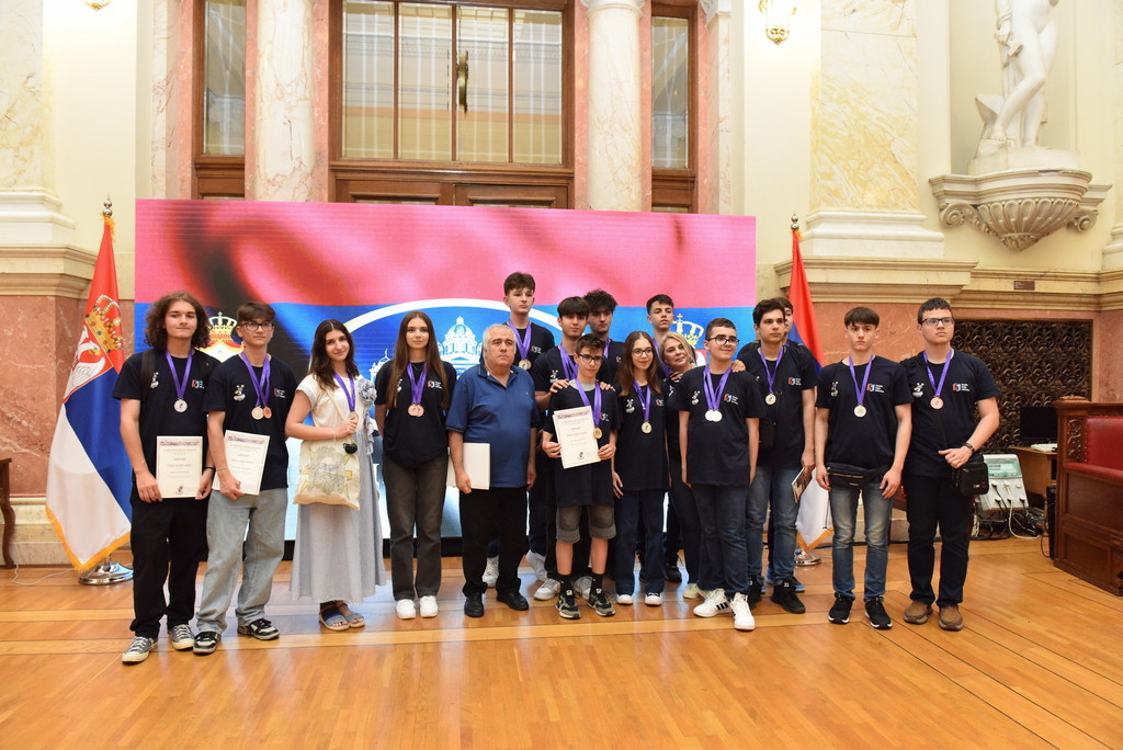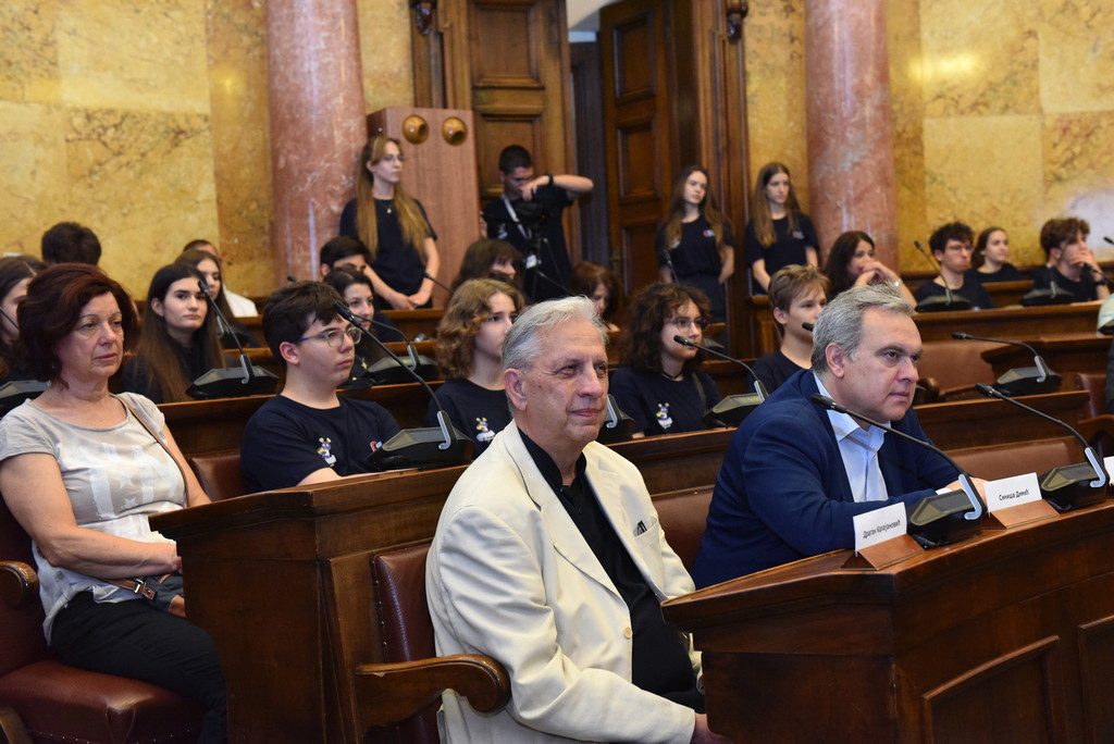 ОпштеМЕЂУНАРОДНА ТАКМИЧЕЊА-фотографијеУ среду, 26. јуна 2024. године у Народној скупштини Републике Србије свечано је затворен дванаести Куп Математичке гимназије. Гостима се обратила директорка Мирјана Катић. Министарство просвете је и ове године било покровитељ Купа. Куп су финансијски помогли: непрофитна организација “Клик за Србију”, компанија “Бамби”, Фондација “Сања Миленковић”, компанија “АБ Софт” и компанија Wargaming.