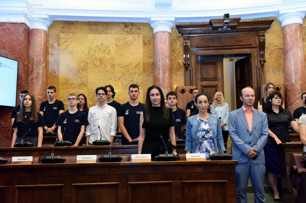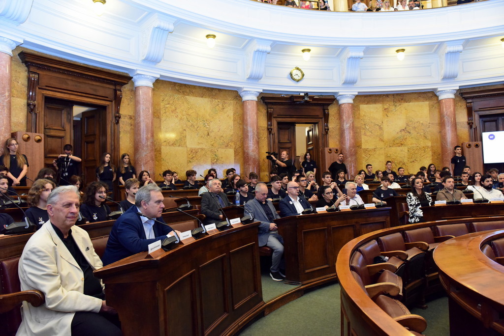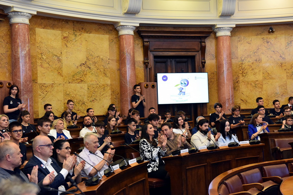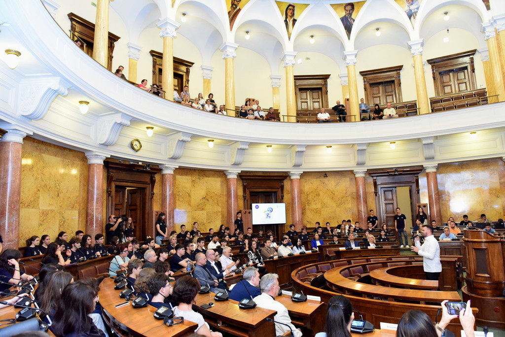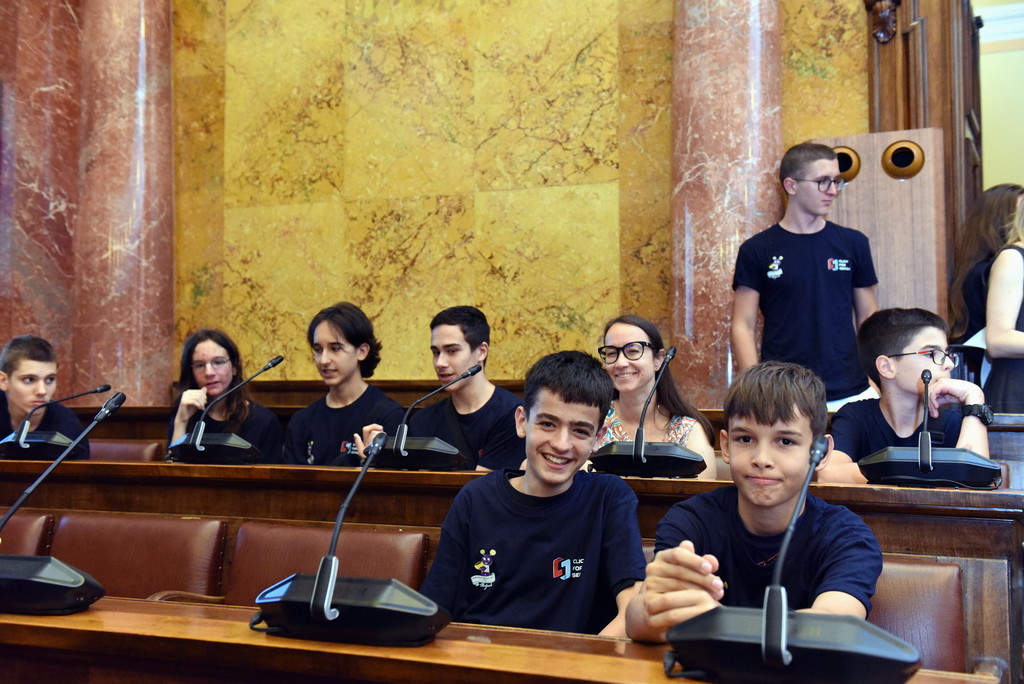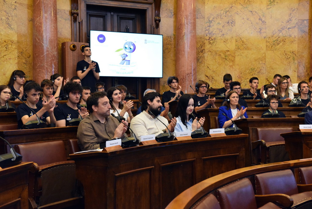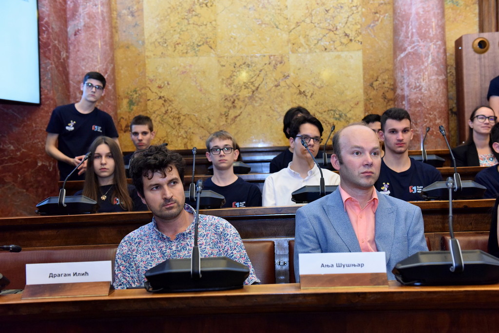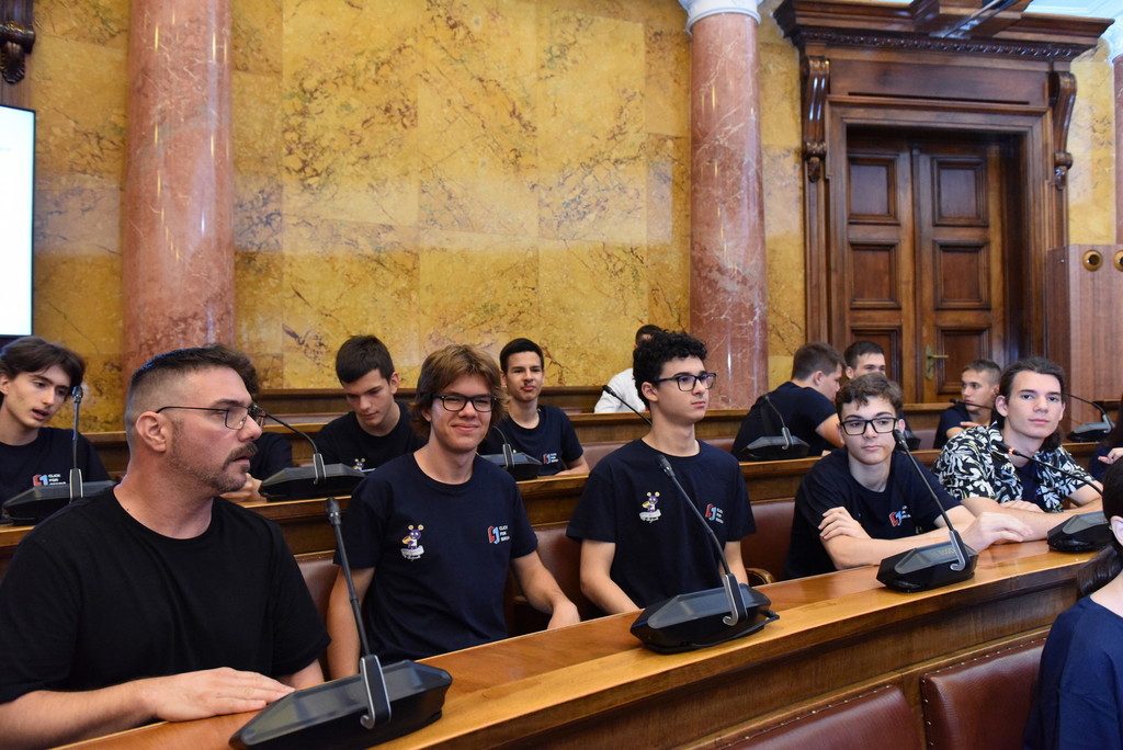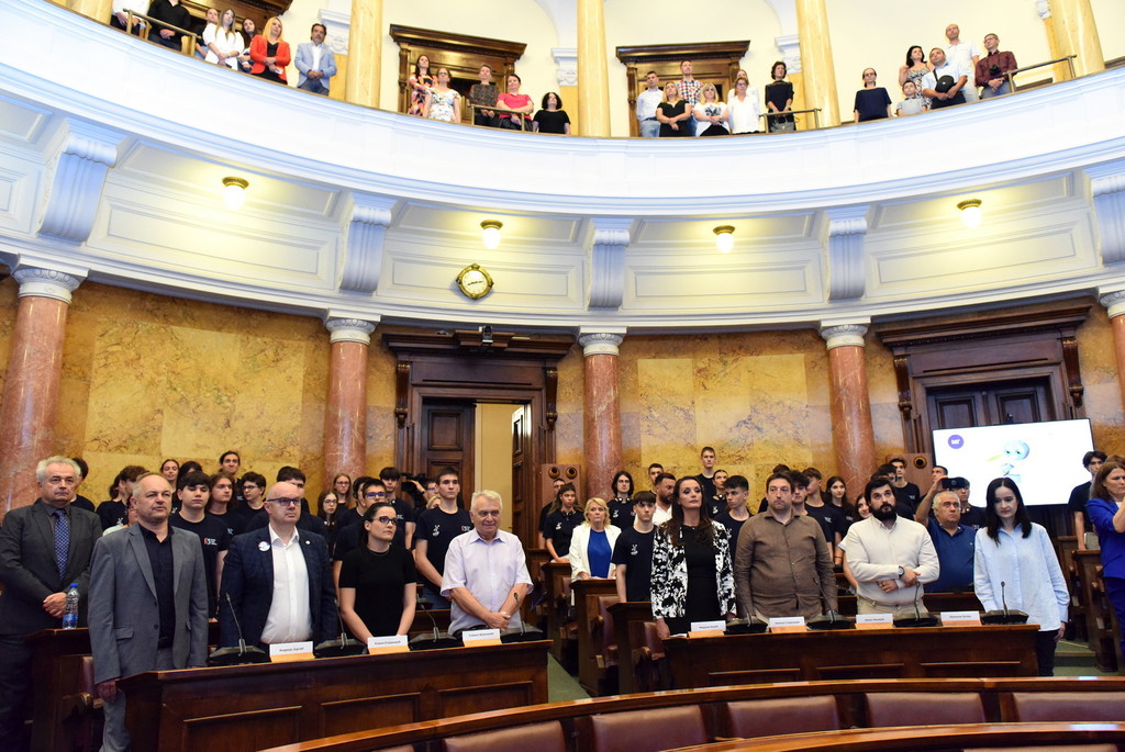 ОпштеМЕЂУНАРОДНА ТАКМИЧЕЊА-фотографијеУ среду, 26. јуна 2024. године у Народној скупштини Републике Србије свечано је затворен дванаести Куп Математичке гимназије. Гостима се обратила директорка Мирјана Катић. Министарство просвете је и ове године било покровитељ Купа. Куп су финансијски помогли: непрофитна организација “Клик за Србију”, компанија “Бамби”, Фондација “Сања Миленковић”, компанија “АБ Софт” и компанија Wargaming.