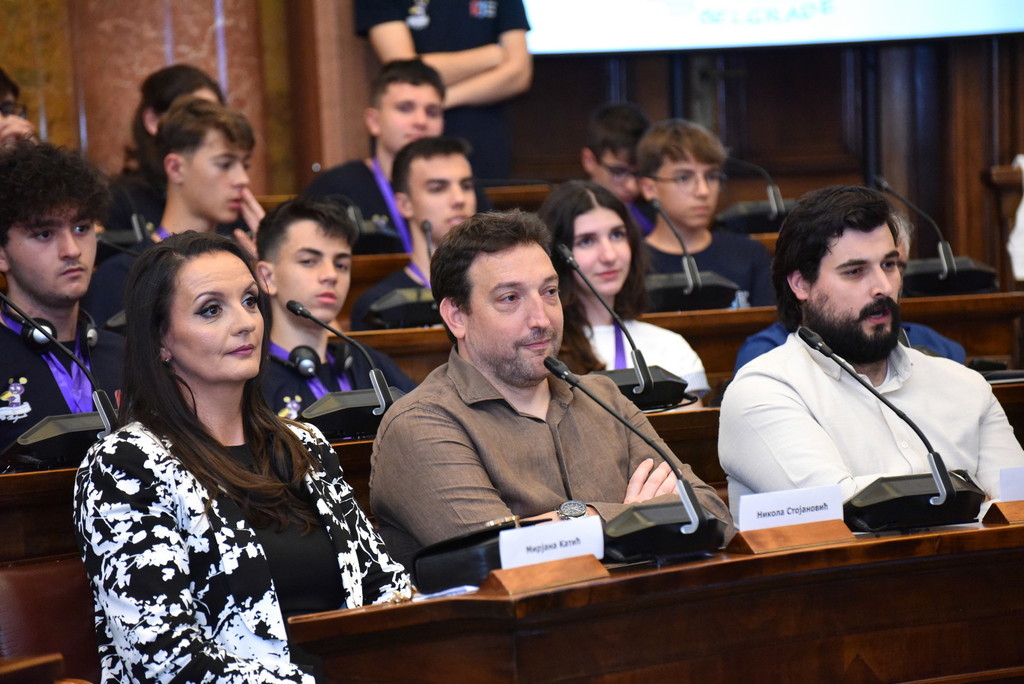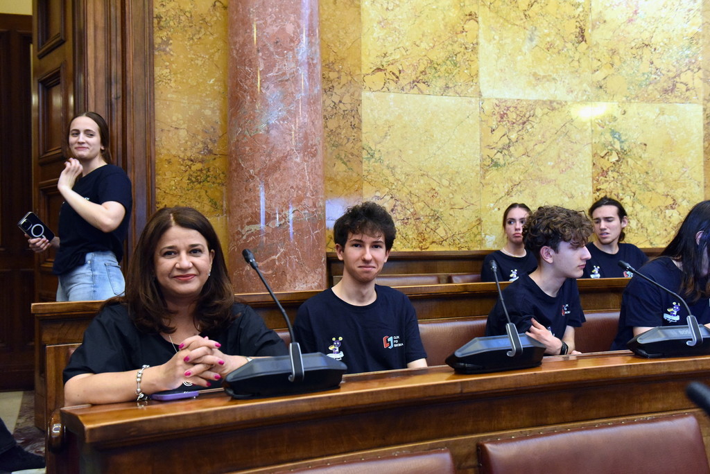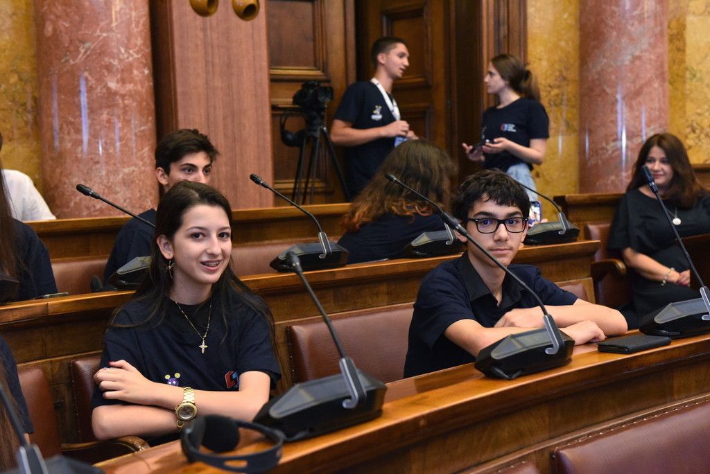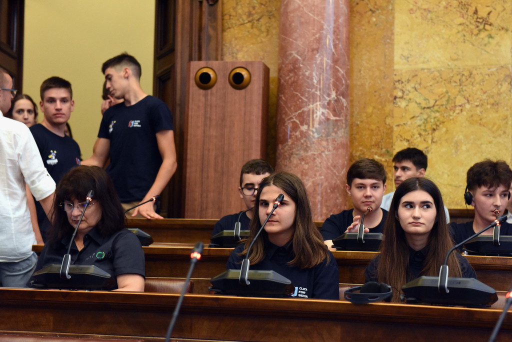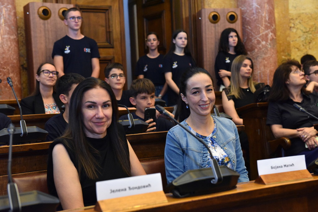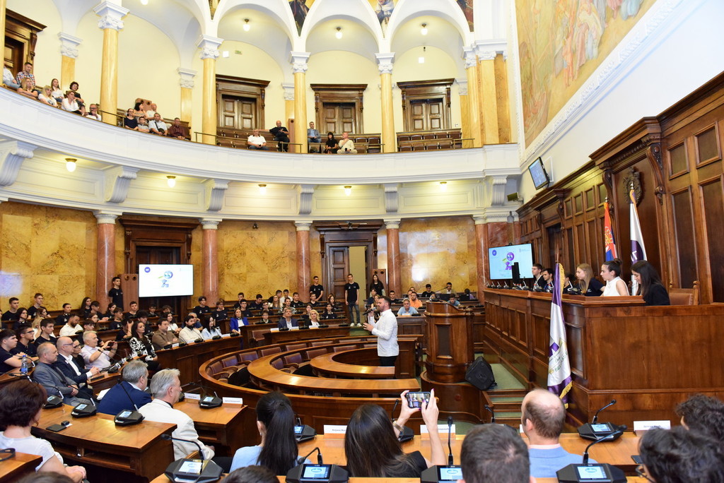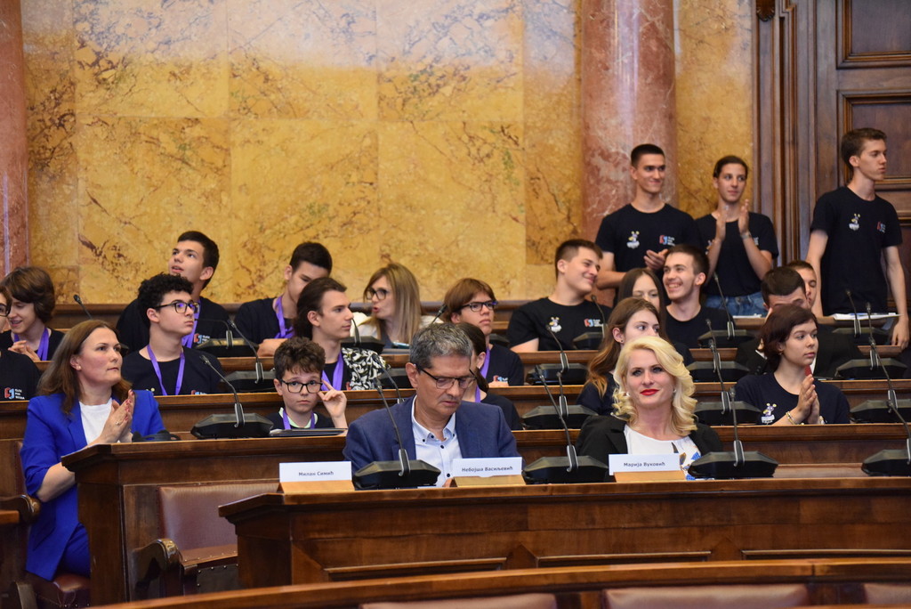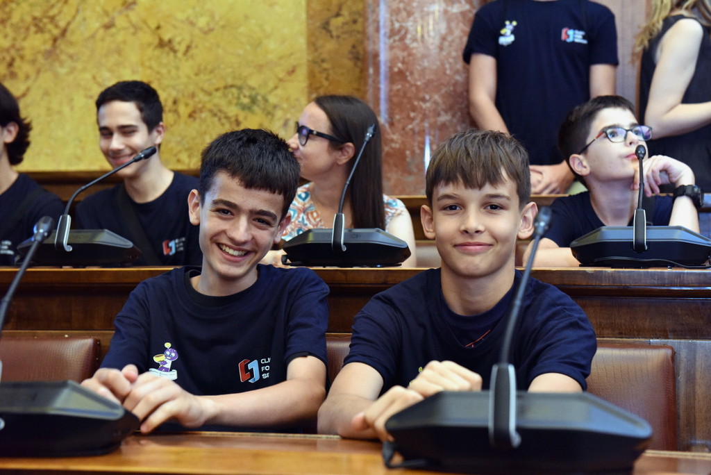 ОпштеМЕЂУНАРОДНА ТАКМИЧЕЊА-фотографијеУ среду, 26. јуна 2024. године у Народној скупштини Републике Србије свечано је затворен дванаести Куп Математичке гимназије. Гостима се обратила директорка Мирјана Катић. Министарство просвете је и ове године било покровитељ Купа. Куп су финансијски помогли: непрофитна организација “Клик за Србију”, компанија “Бамби”, Фондација “Сања Миленковић”, компанија “АБ Софт” и компанија Wargaming.