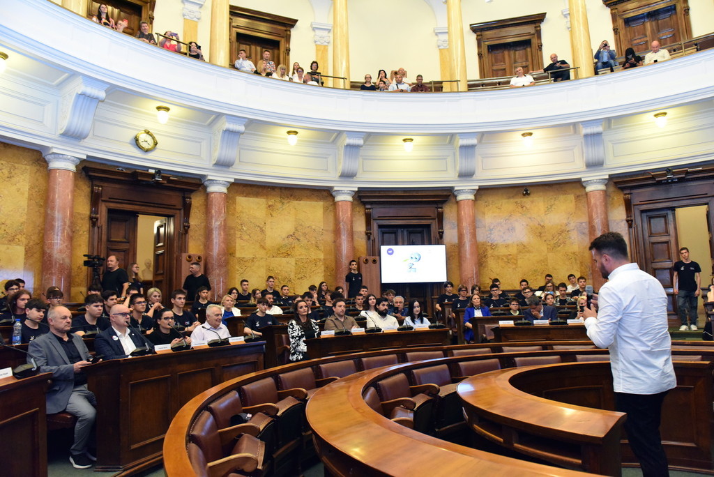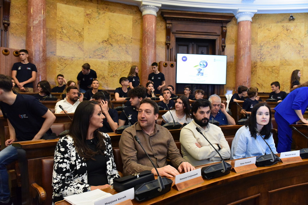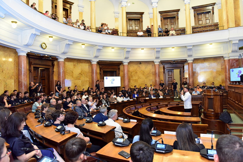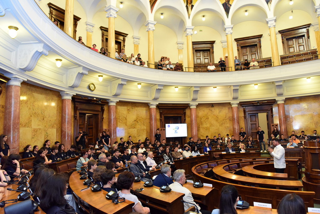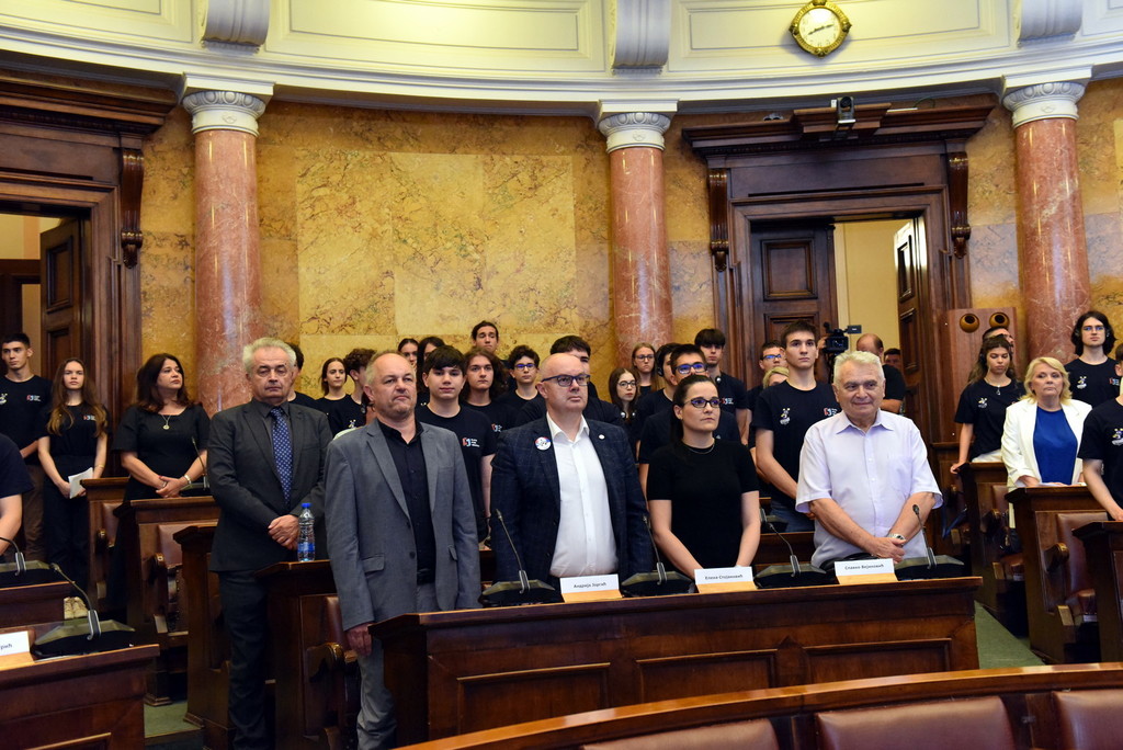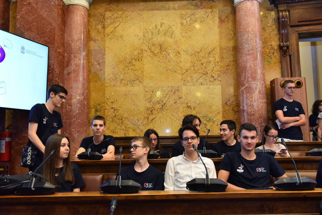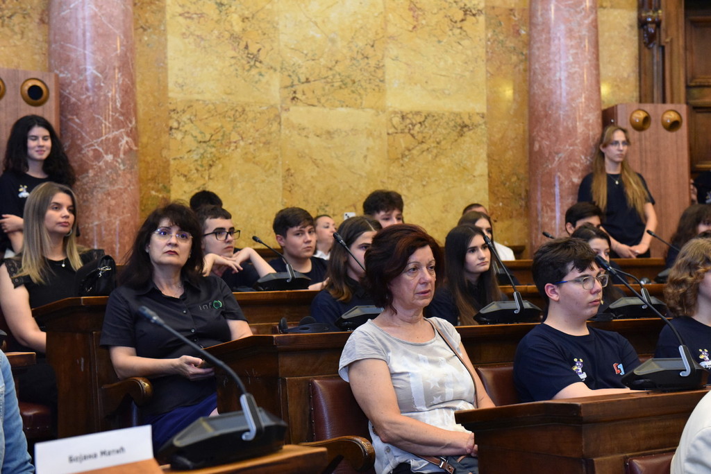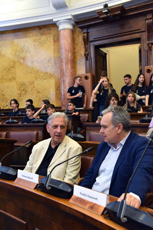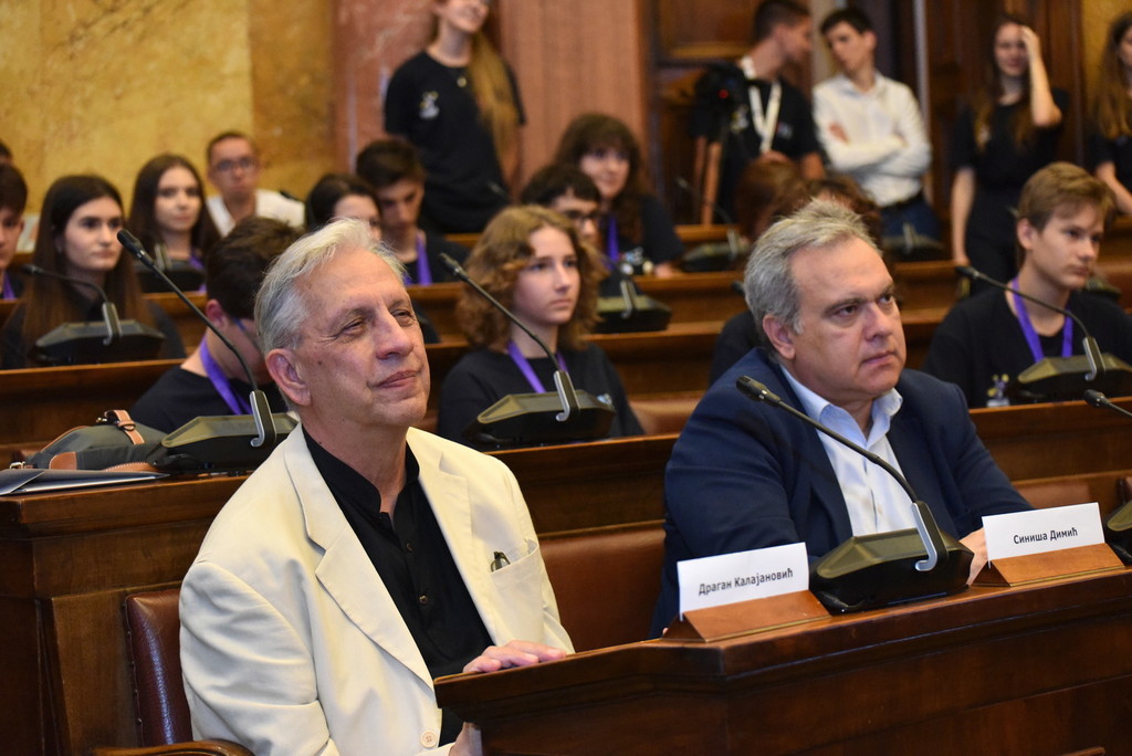 ОпштеМЕЂУНАРОДНА ТАКМИЧЕЊА-фотографијеУ среду, 26. јуна 2024. године у Народној скупштини Републике Србије свечано је затворен дванаести Куп Математичке гимназије. Гостима се обратила директорка Мирјана Катић. Министарство просвете је и ове године било покровитељ Купа. Куп су финансијски помогли: непрофитна организација “Клик за Србију”, компанија “Бамби”, Фондација “Сања Миленковић”, компанија “АБ Софт” и компанија Wargaming.