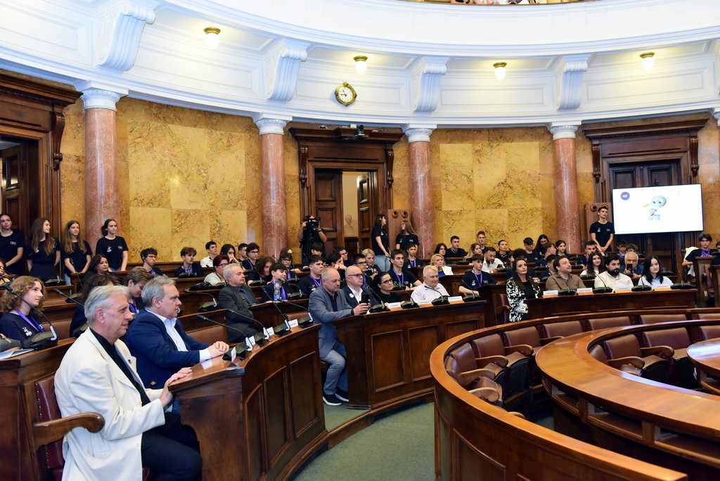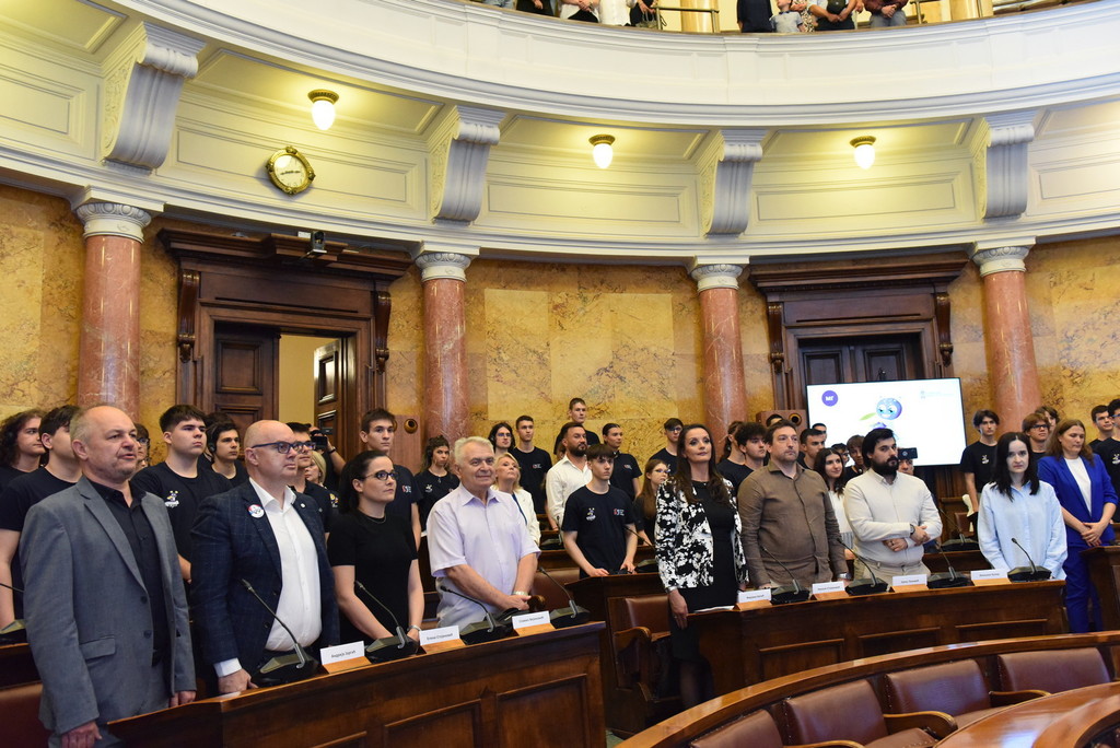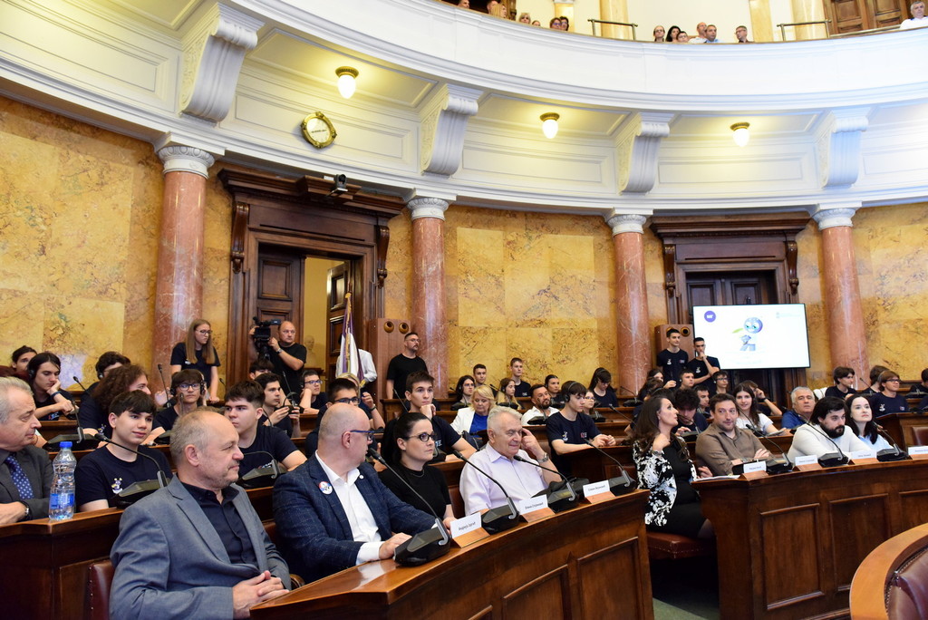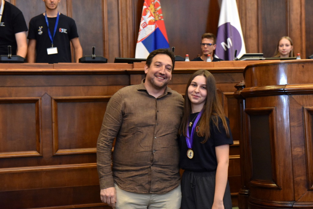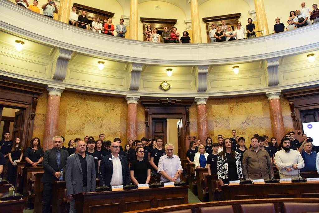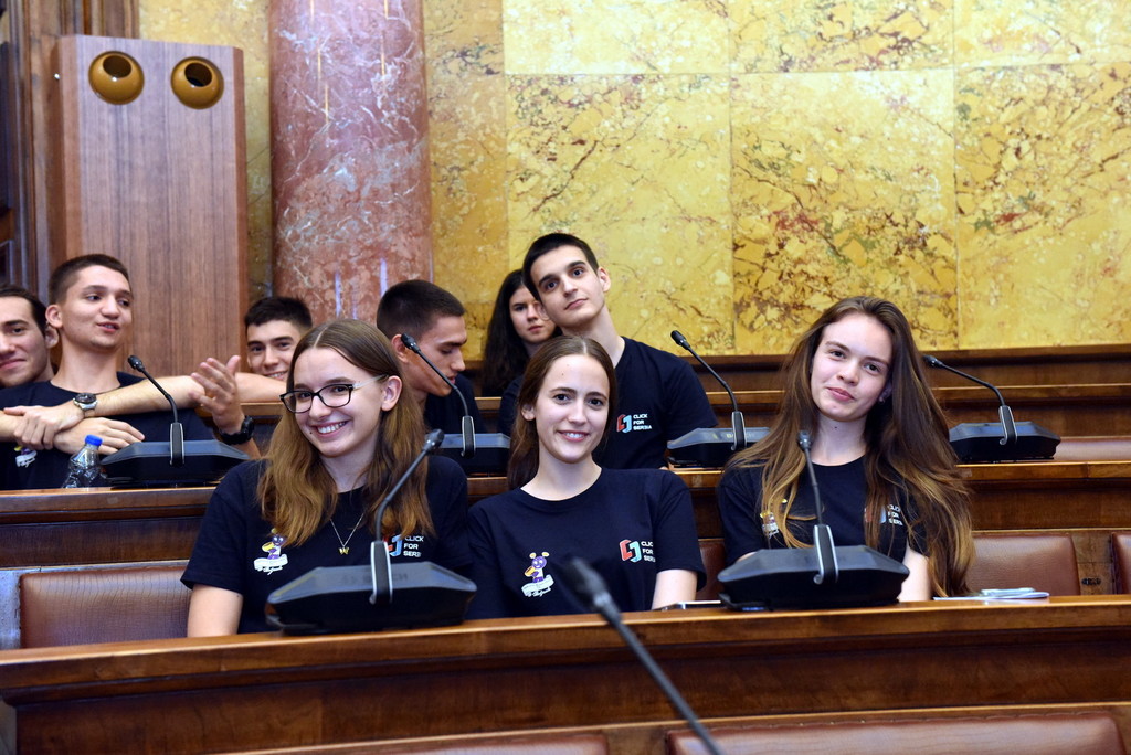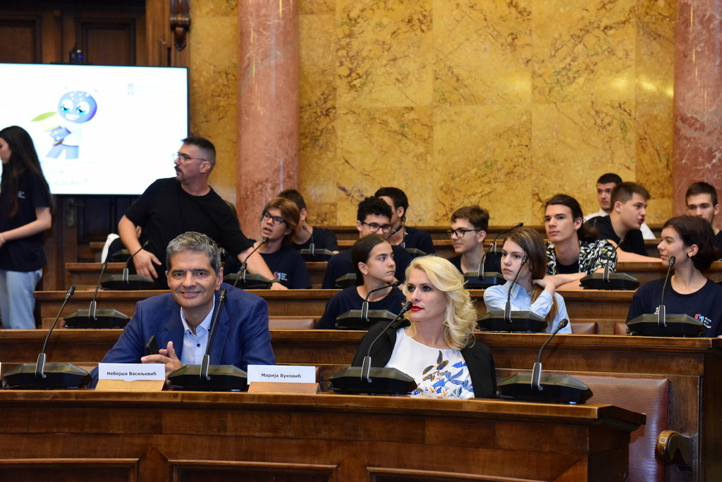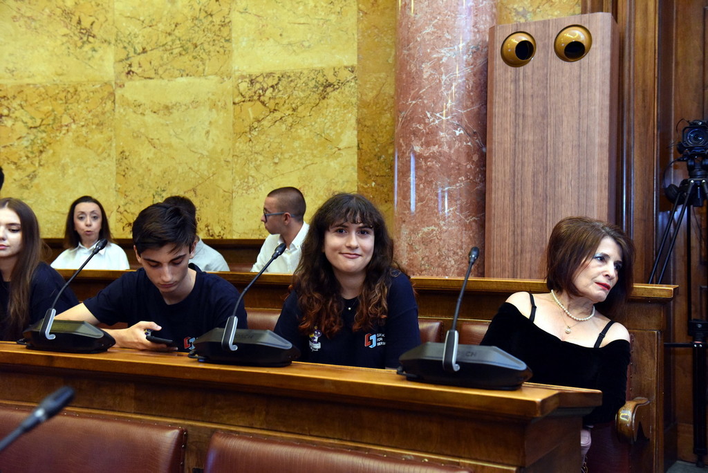 ОпштеМЕЂУНАРОДНА ТАКМИЧЕЊА-фотографијеУ среду, 26. јуна 2024. године у Народној скупштини Републике Србије свечано је затворен дванаести Куп Математичке гимназије. Гостима се обратила директорка Мирјана Катић. Министарство просвете је и ове године било покровитељ Купа. Куп су финансијски помогли: непрофитна организација “Клик за Србију”, компанија “Бамби”, Фондација “Сања Миленковић”, компанија “АБ Софт” и компанија Wargaming.