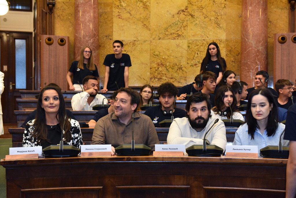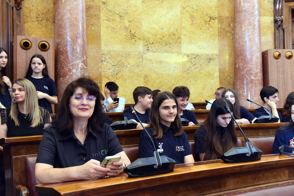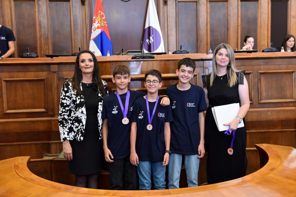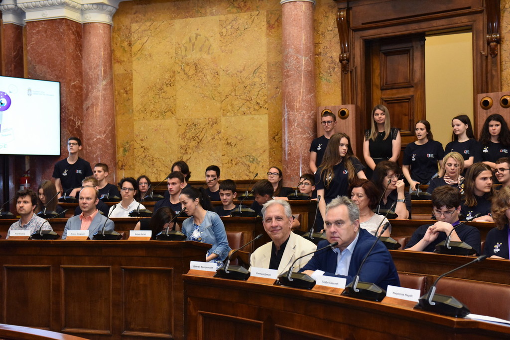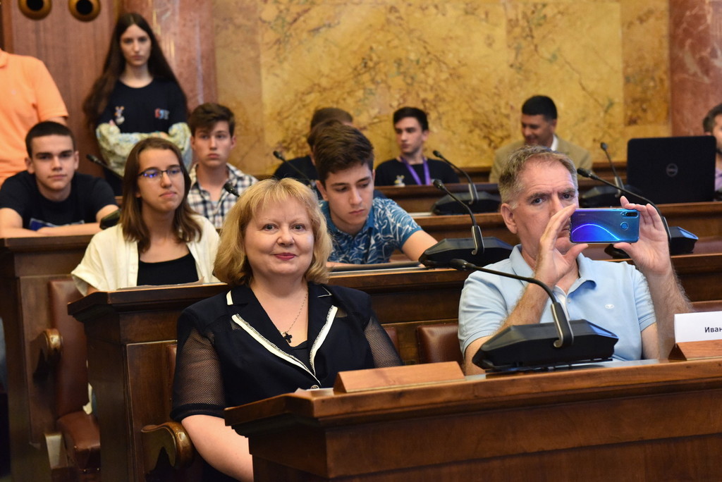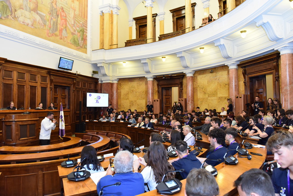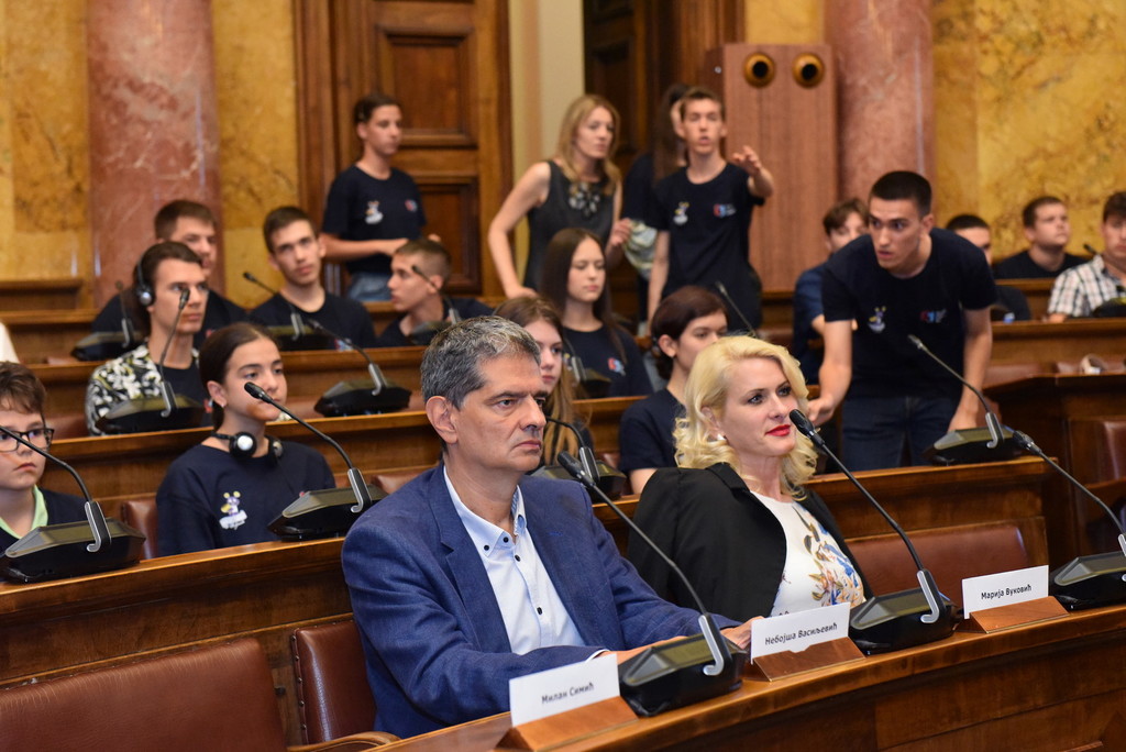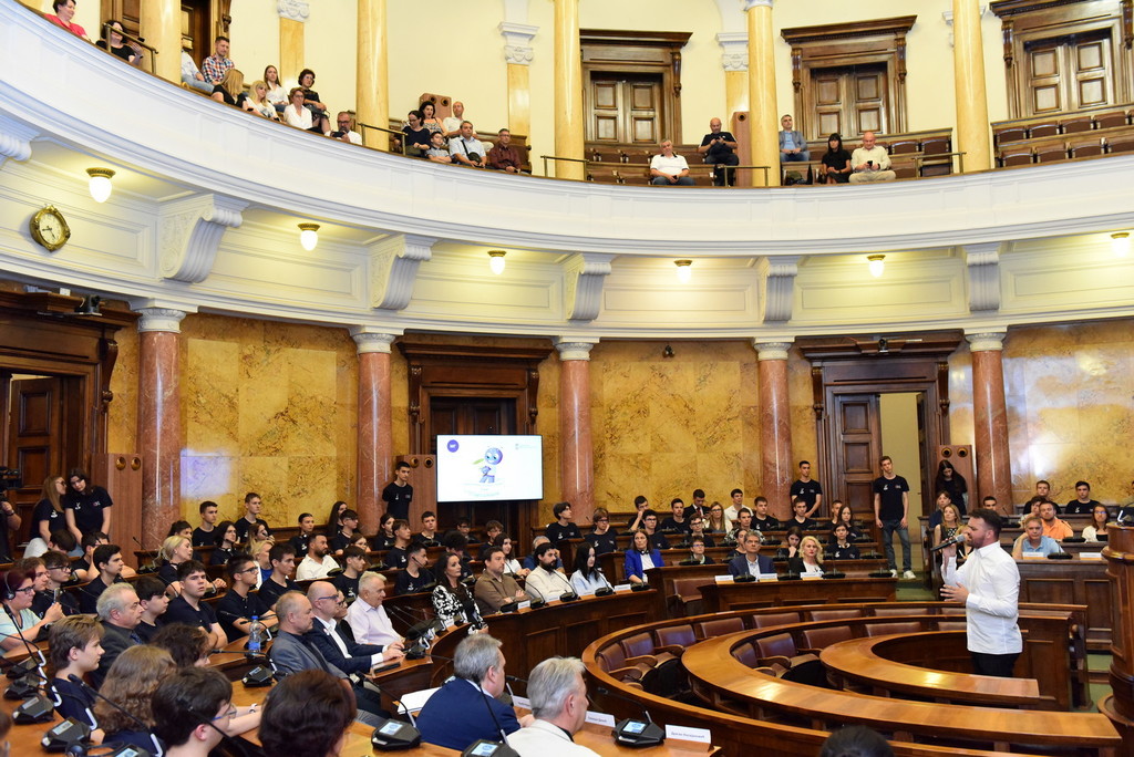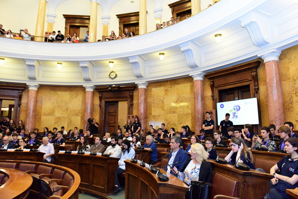 ОпштеМЕЂУНАРОДНА ТАКМИЧЕЊА-фотографијеУ среду, 26. јуна 2024. године у Народној скупштини Републике Србије свечано је затворен дванаести Куп Математичке гимназије. Гостима се обратила директорка Мирјана Катић. Министарство просвете је и ове године било покровитељ Купа. Куп су финансијски помогли: непрофитна организација “Клик за Србију”, компанија “Бамби”, Фондација “Сања Миленковић”, компанија “АБ Софт” и компанија Wargaming.