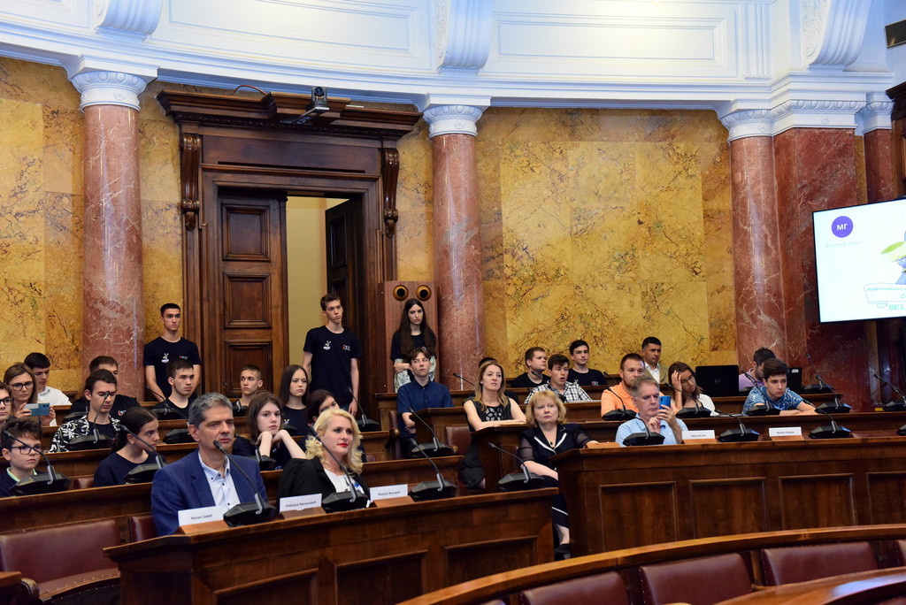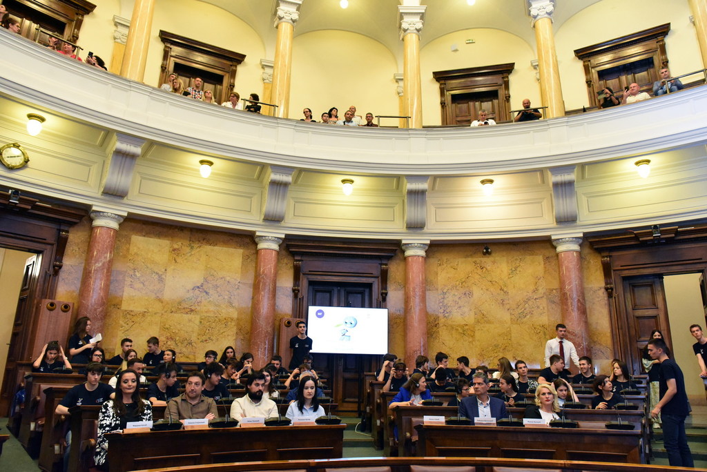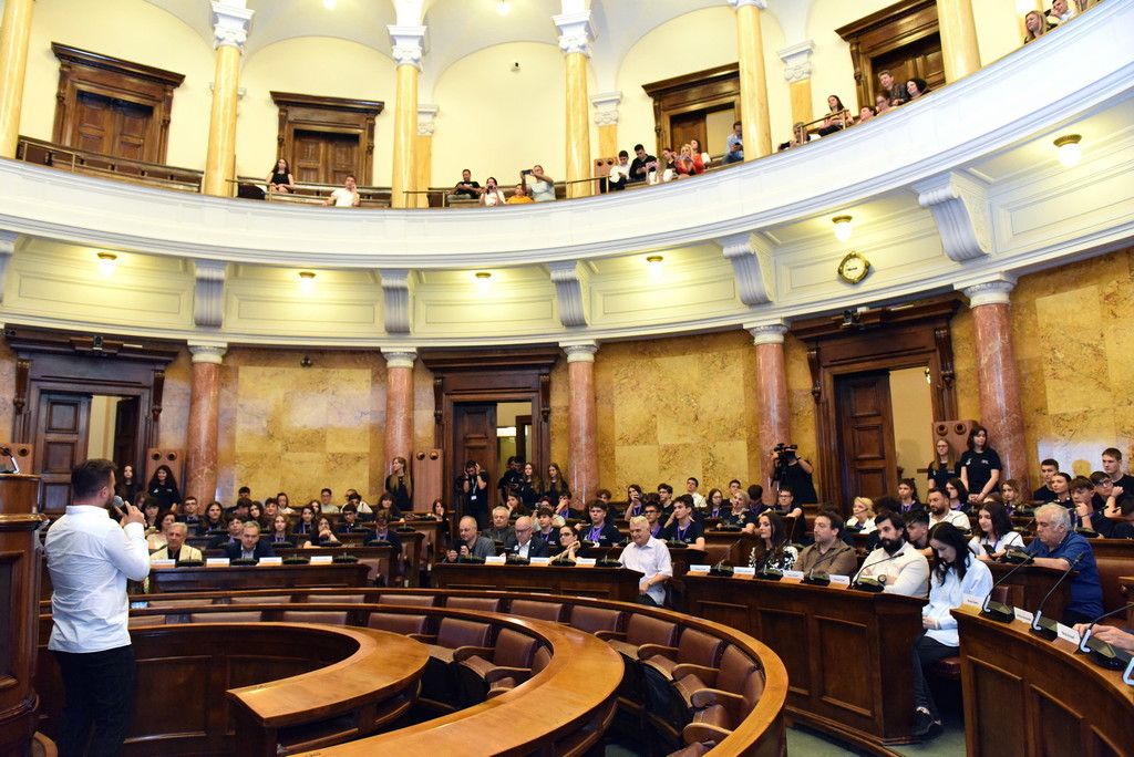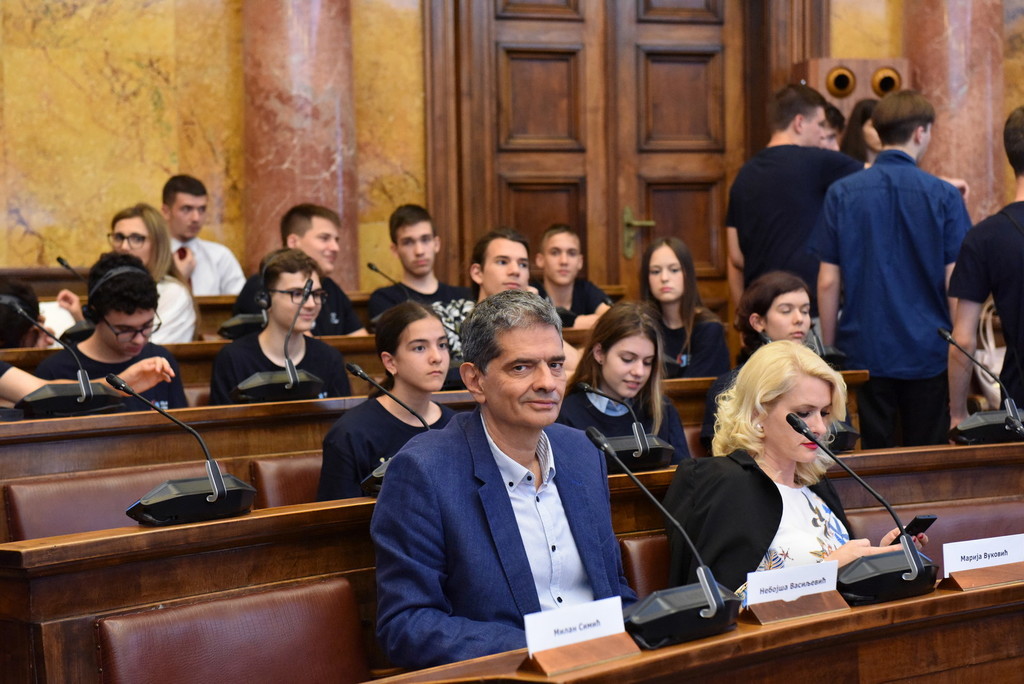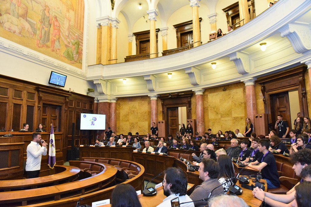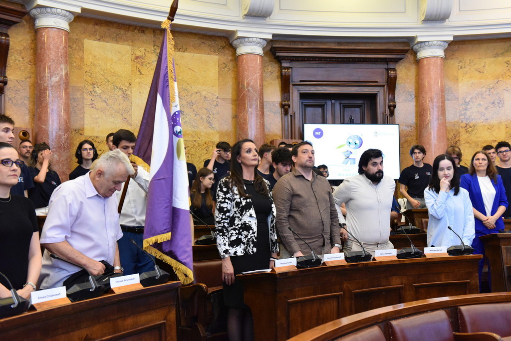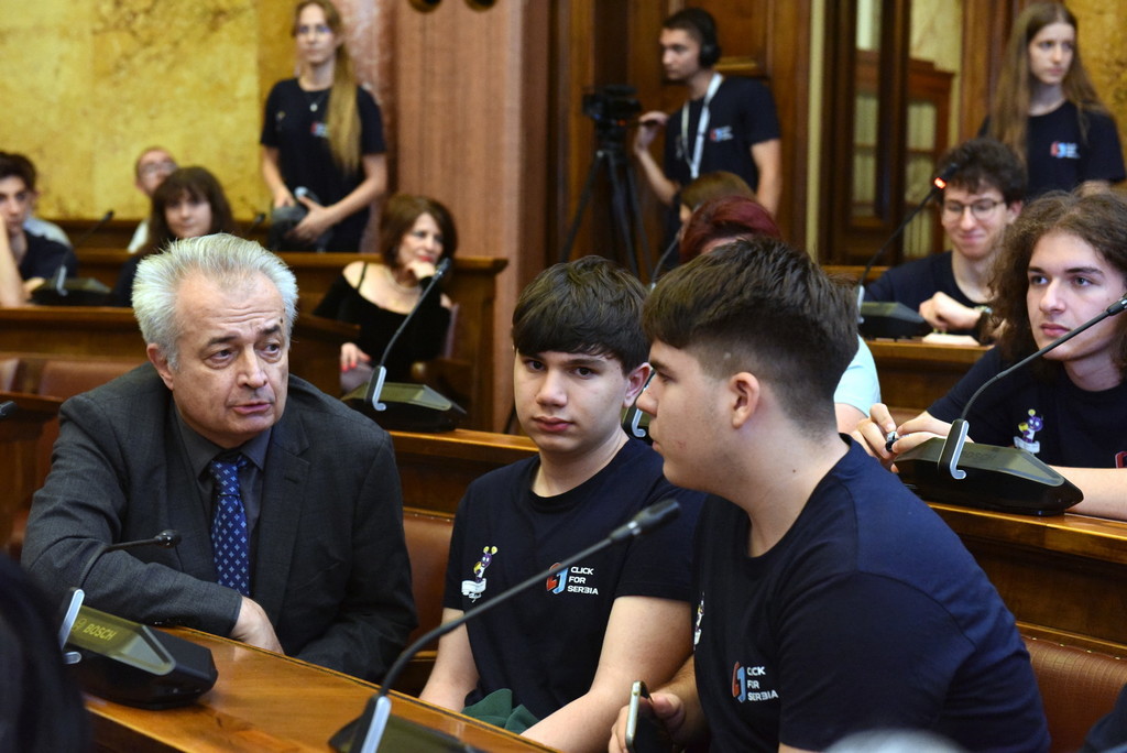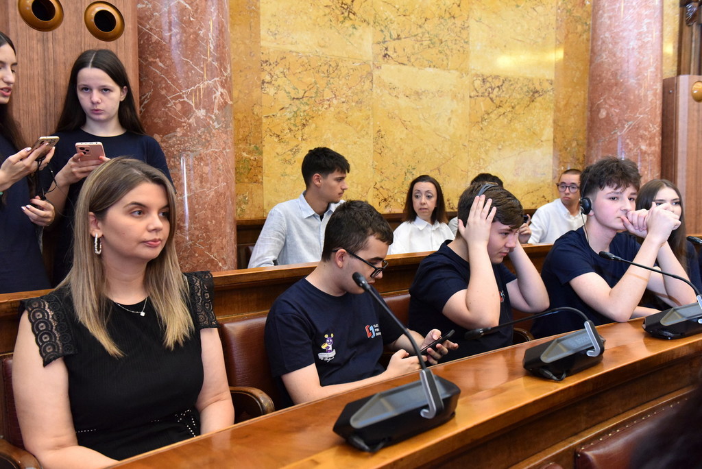 ОпштеМЕЂУНАРОДНА ТАКМИЧЕЊА-фотографијеУ среду, 26. јуна 2024. године у Народној скупштини Републике Србије свечано је затворен дванаести Куп Математичке гимназије. Гостима се обратила директорка Мирјана Катић. Министарство просвете је и ове године било покровитељ Купа. Куп су финансијски помогли: непрофитна организација “Клик за Србију”, компанија “Бамби”, Фондација “Сања Миленковић”, компанија “АБ Софт” и компанија Wargaming.