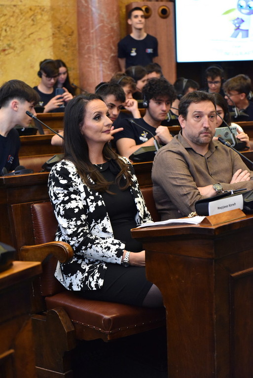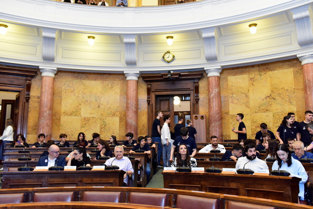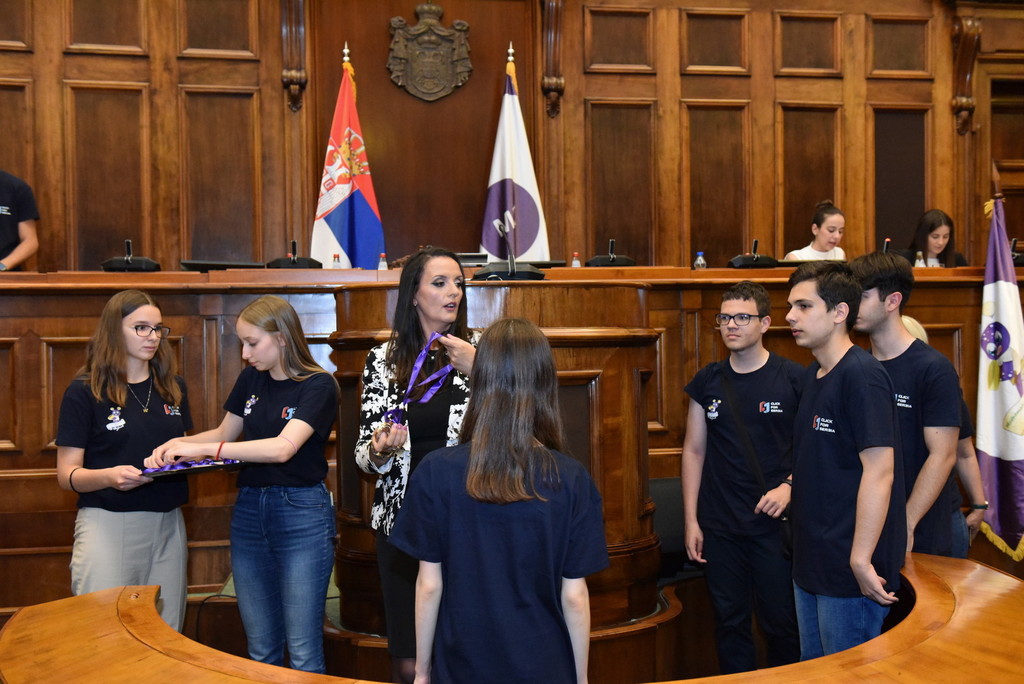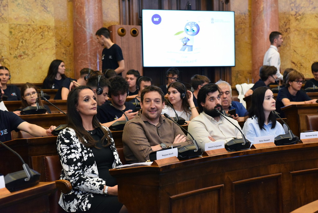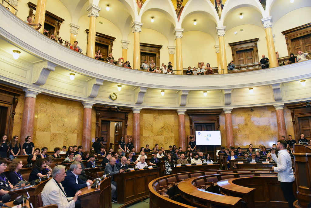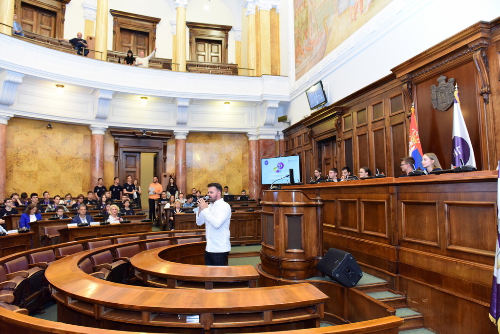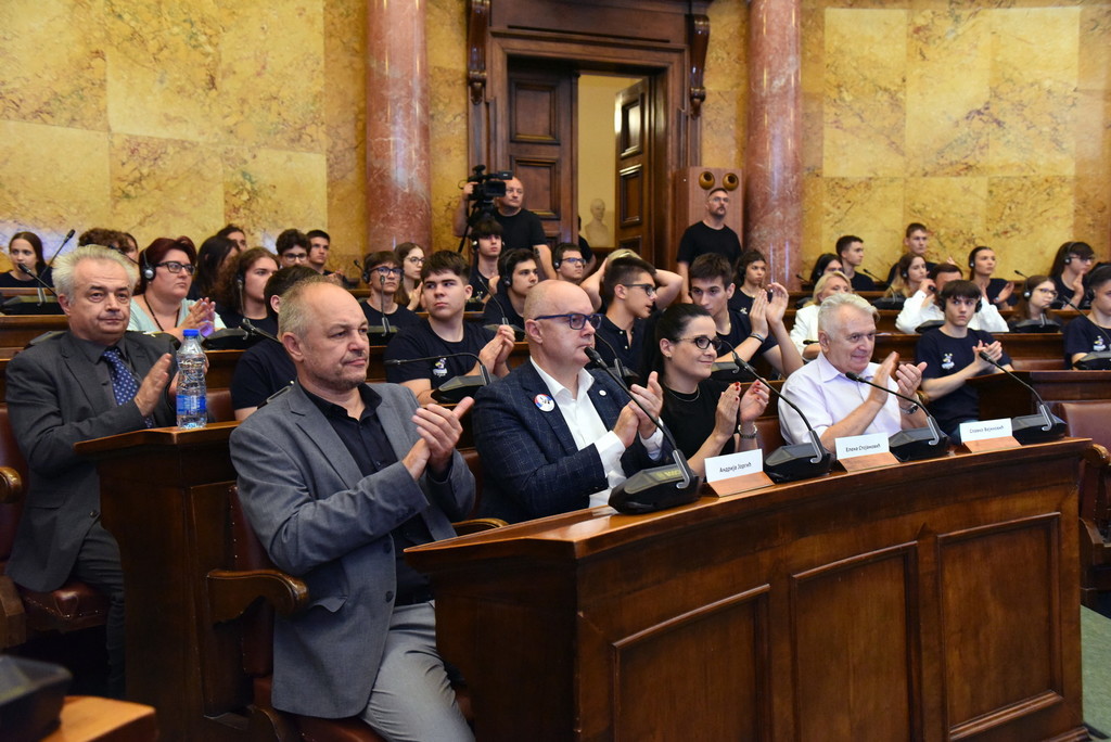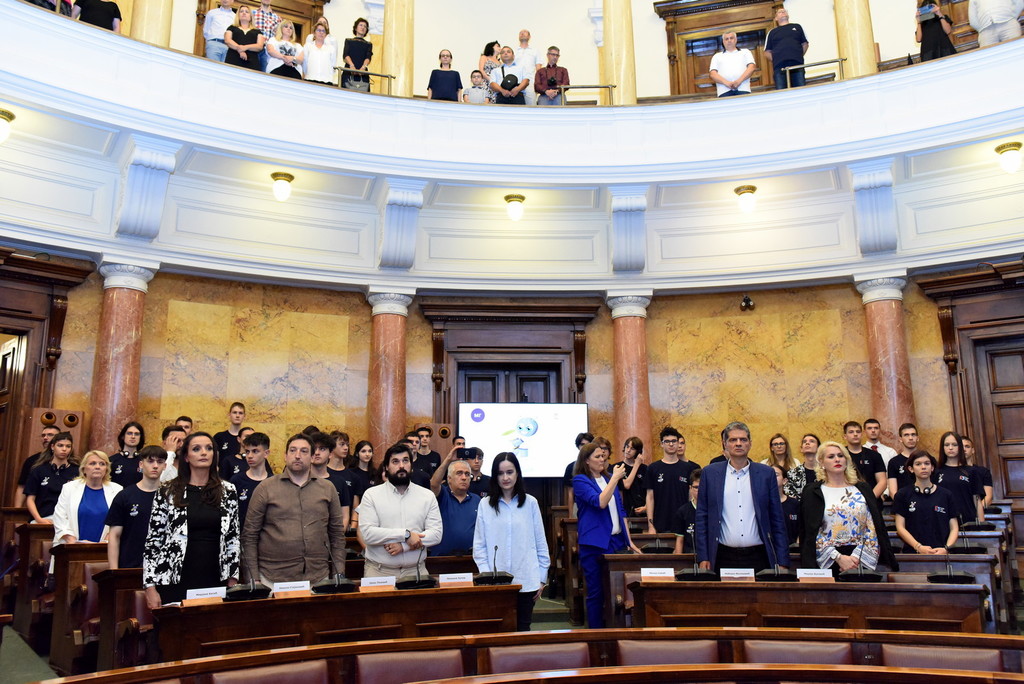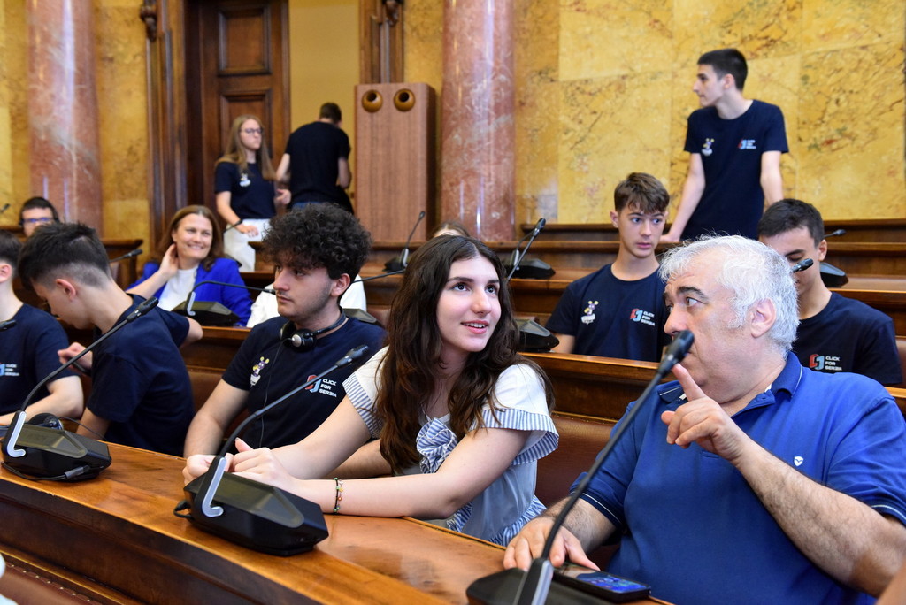 ОпштеМЕЂУНАРОДНА ТАКМИЧЕЊА-фотографијеУ среду, 26. јуна 2024. године у Народној скупштини Републике Србије свечано је затворен дванаести Куп Математичке гимназије. Гостима се обратила директорка Мирјана Катић. Министарство просвете је и ове године било покровитељ Купа. Куп су финансијски помогли: непрофитна организација “Клик за Србију”, компанија “Бамби”, Фондација “Сања Миленковић”, компанија “АБ Софт” и компанија Wargaming.